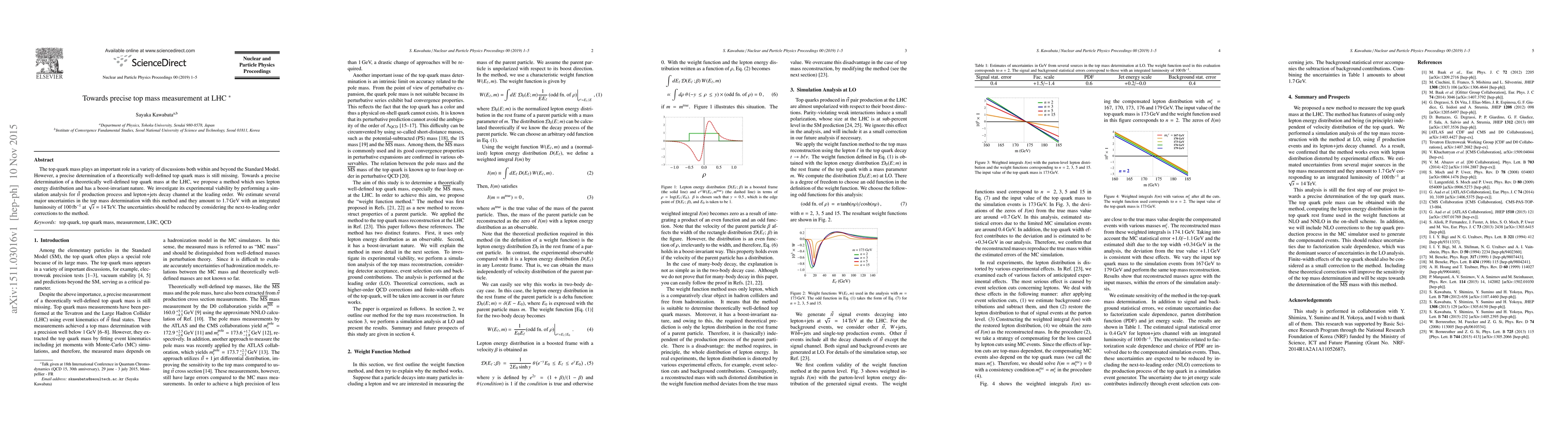 The top quark mass plays an important role in a variety of discussions both within and beyond the Standard Model. However, a precise determination of a theoretically well-defined top quark mass is still missing. Towards a precise determination of a theoretically well-defined top quark mass at the LHC, we propose a method which uses lepton energy distribution and has a boost-invariant nature. We investigate its experimental viability by performing a simulation analysis for ttbar production process and lepton+jets decay channel at the leading order. We estimate several major uncertainties in the top mass determination with this method and they amount to 1.7 GeV with an integrated luminosity of 100 fb^{-1} at sqrt{s}=14 TeV. The uncertainties should be reduced by considering the next-to-leading order corrections to the method.