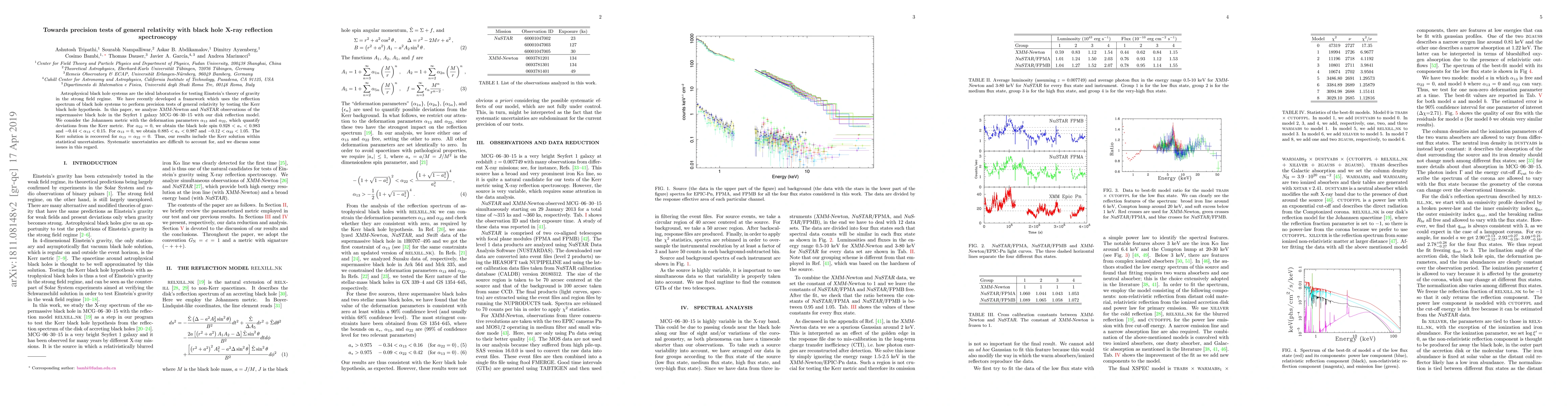 This paper develops a framework to test general relativity using X-ray reflection spectroscopy from black hole systems, analyzing observations of the supermassive black hole in MCG-06-30-15. The results suggest the black hole spin is consistent with the Kerr solution within statistical uncertainties, though systematic uncertainties remain challenging to fully account for.