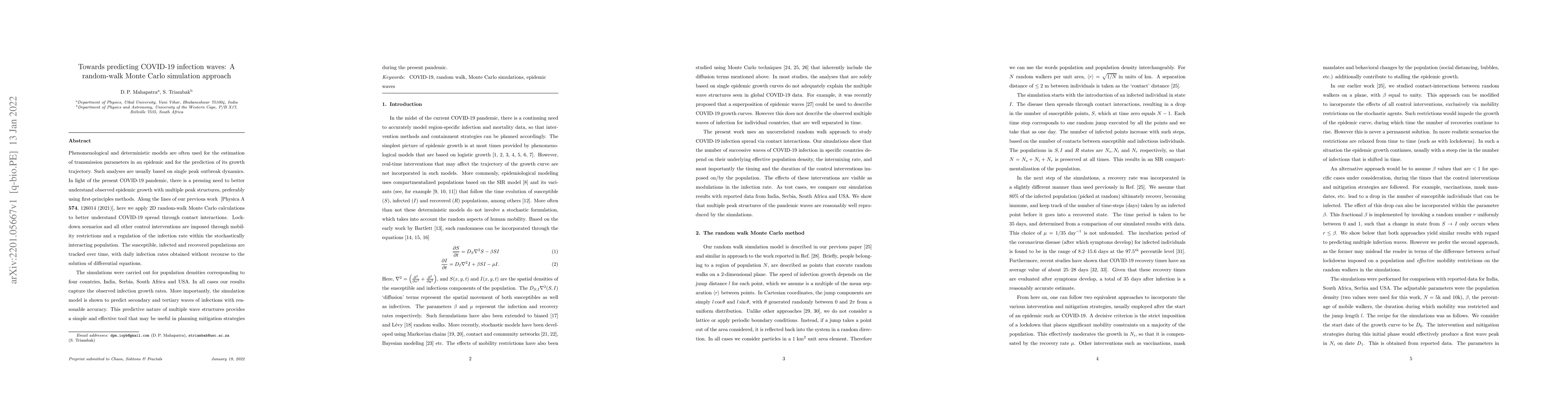 This study uses a random-walk Monte Carlo simulation to predict COVID-19 infection waves with reasonable accuracy, capturing observed growth rates and secondary/tertiary wave structures in four countries.