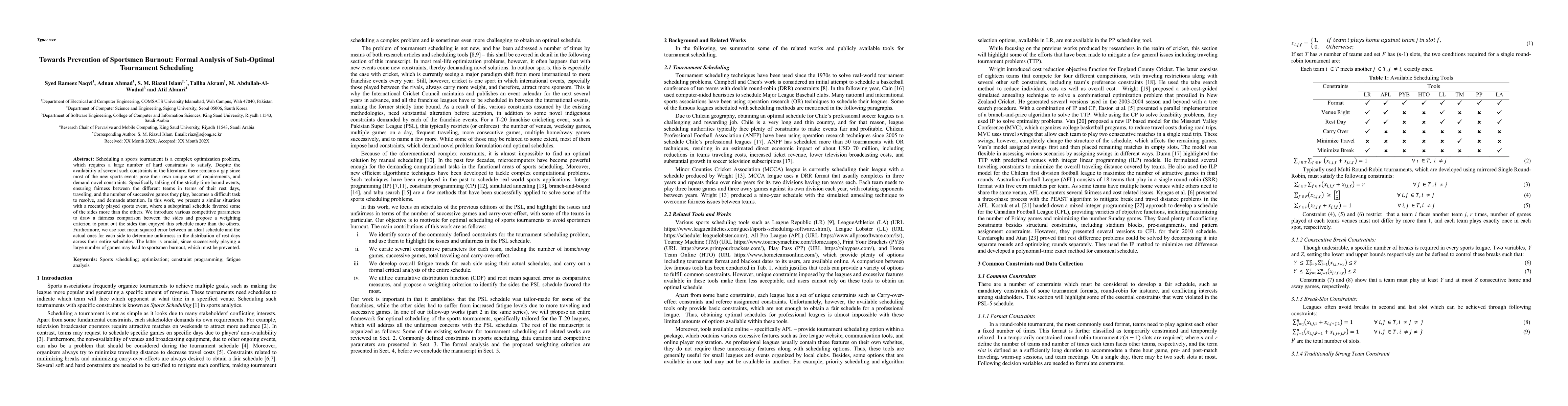 Scheduling a sports tournament is a complex optimization problem, which requires a large number of hard constraints to satisfy. Despite the availability of several such constraints in the literature, there remains a gap since most of the new sports events pose their own unique set of requirements, and demand novel constraints. Specifically talking of the strictly time bound events, ensuring fairness between the different teams in terms of their rest days, traveling, and the number of successive games they play, becomes a difficult task to resolve, and demands attention. In this work, we present a similar situation with a recently played sports event, where a suboptimal schedule favored some of the sides more than the others. We introduce various competitive parameters to draw a fairness comparison between the sides and propose a weighting criterion to point out the sides that enjoyed this schedule more than the others. Furthermore, we use root mean squared error between an ideal schedule and the actual ones for each side to determine unfairness in the distribution of rest days across their entire schedules. The latter is crucial, since successively playing a large number of games may lead to sportsmen burnout, which must be prevented.