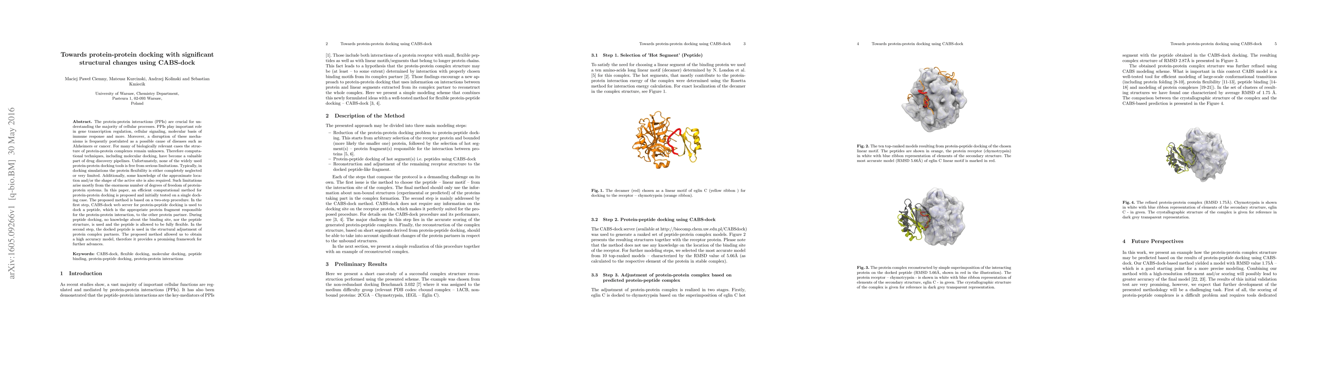 This paper proposes a novel two-step computational method for protein-protein docking that accommodates significant structural changes, using CABS-dock. The method first employs CABS-dock for flexible peptide docking without prior knowledge of binding sites, followed by structural adjustment of the protein complex partners, achieving high accuracy and offering a promising framework for future improvements in docking techniques.