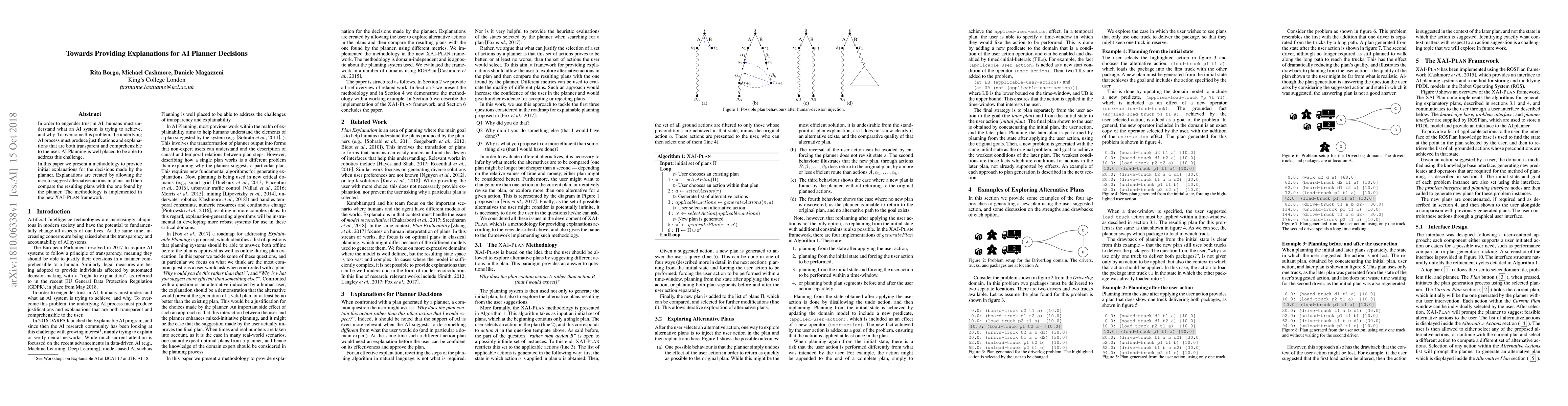 This paper proposes a methodology to provide transparent and comprehensible explanations for AI planner decisions, aiming to build user trust. The approach involves allowing users to suggest alternative actions and compare outcomes, implemented in the XAI-Plan framework.