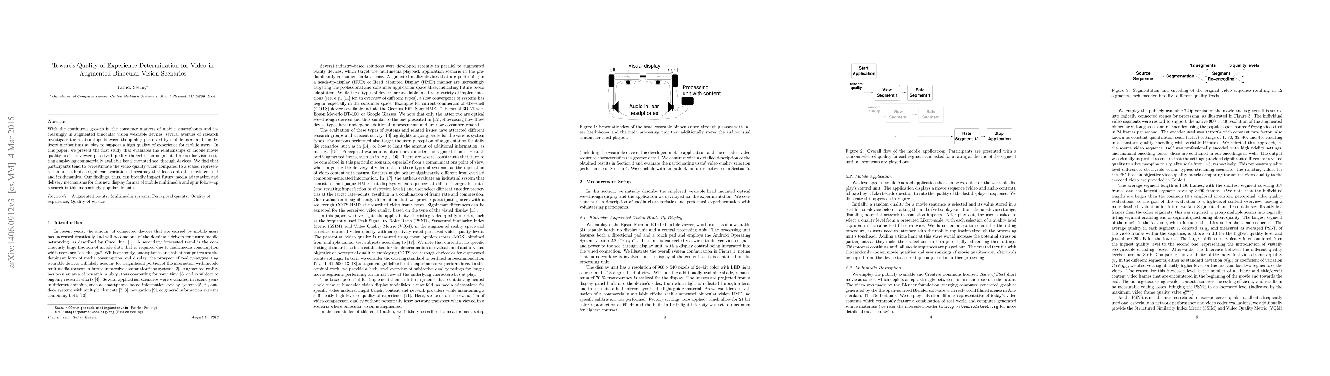 This study investigates how users perceive video quality in augmented reality settings with see-through devices. It finds that participants often overestimate video quality, with accuracy varying based on content dynamics, which can inform future media adaptation and delivery mechanisms for augmented reality.