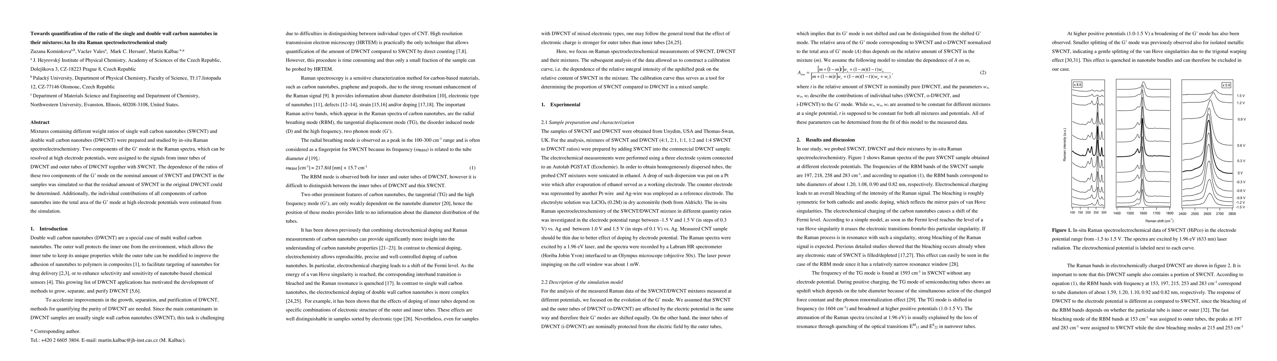 This study employs in-situ Raman spectroelectrochemistry to quantify the ratio of single wall carbon nanotubes (SWCNT) and double wall carbon nanotubes (DWCNT) in their mixtures. The G-prime mode's components in Raman spectra were analyzed to determine the residual SWCNT in DWCNT mixtures and estimate the individual contributions of each nanotube type.