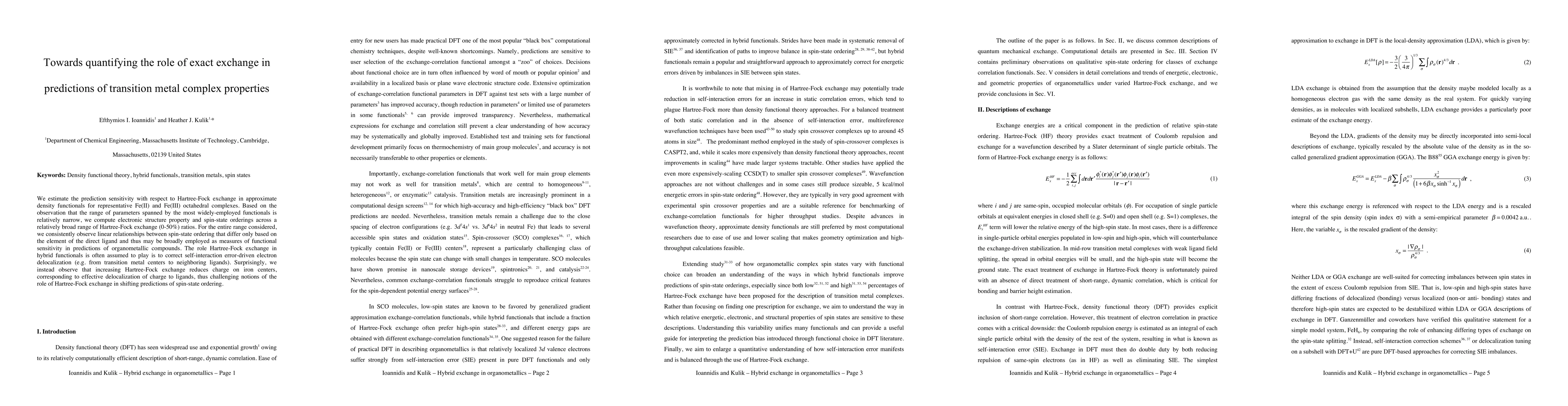 We estimate the prediction sensitivity with respect to Hartree-Fock exchange in approximate density functionals for representative Fe(II) and Fe(III) octahedral complexes. Based on the observation that the range of parameters spanned by the most widely-employed functionals is relatively narrow, we compute electronic structure property and spin-state orderings across a relatively broad range of Hartree-Fock exchange (0-50%) ratios. For the entire range considered, we consistently observe linear relationships between spin-state ordering that differ only based on the element of the direct ligand and thus may be broadly employed as measures of functional sensitivity in predictions of organometallic compounds. The role Hartree-Fock exchange in hybrid functionals is often assumed to play is to correct self-interaction error-driven electron delocalization (e.g. from transition metal centers to neighboring ligands). Surprisingly, we instead observe that increasing Hartree-Fock exchange reduces charge on iron centers, corresponding to effective delocalization of charge to ligands, thus challenging notions of the role of Hartree-Fock exchange in shifting predictions of spin-state ordering.