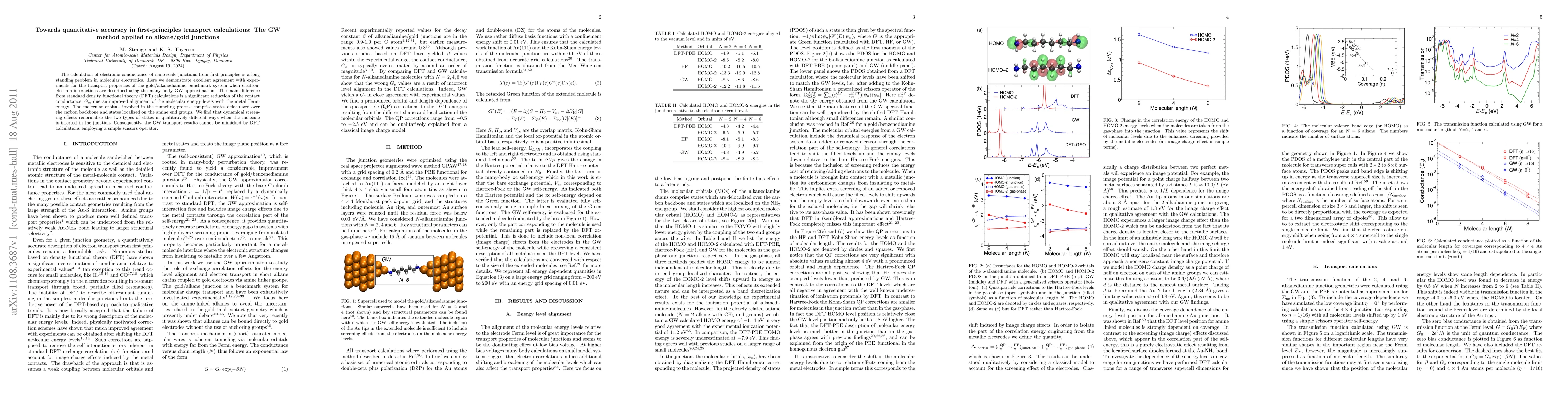 Researchers used a new method to calculate the electronic conductance of nano-scale junctions, achieving excellent agreement with experiments for a specific gold/alkanediamine system. The method improved the alignment of molecular energy levels with metal Fermi energy, leading to more accurate results.