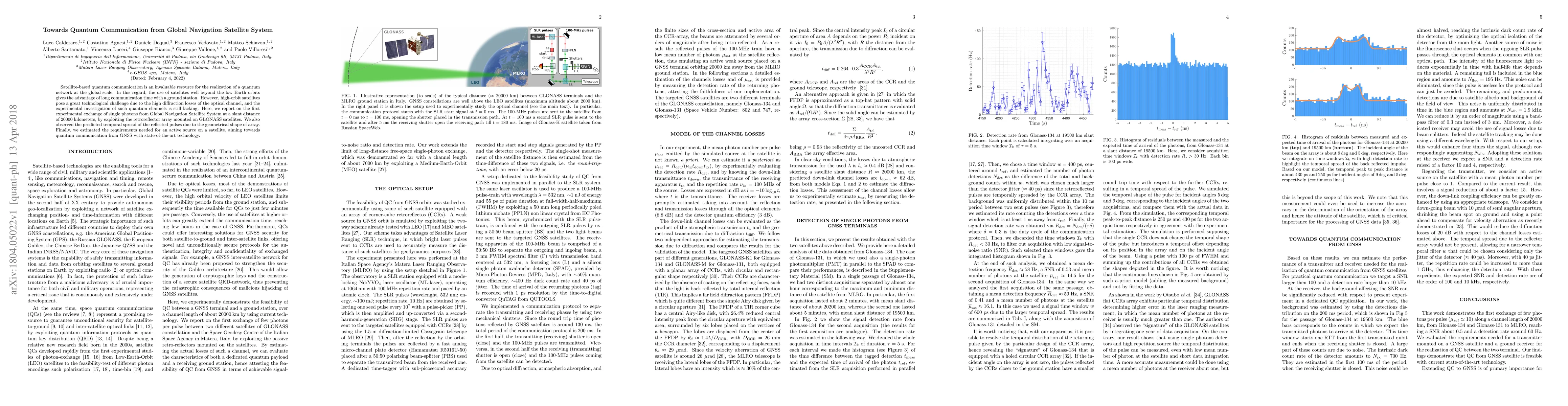 This paper reports the first experimental exchange of single photons from a Global Navigation Satellite System (GNSS) over a distance of 20,000 kilometers, using a retroreflector array on GLONASS satellites. The study also analyzes diffraction losses and temporal pulse spread, and outlines the technological requirements for future satellite-based quantum communication.