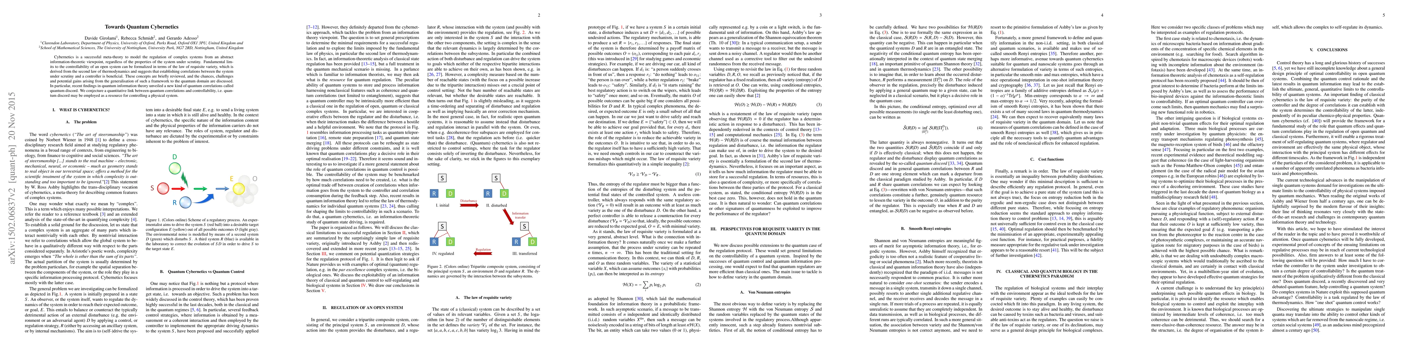 Classical cybernetics is a successful meta-theory to model the regulation of complex systems from an abstract information-theoretic viewpoint, regardless of the properties of the system under scrutiny. Fundamental limits to the controllability of an open system can be formalized in terms of the law of requisite variety, which is derived from the second law of thermodynamics. These concepts are briefly reviewed, and the chances, challenges and potential gains arising from the generalisation of such a framework to the quantum domain are discussed.