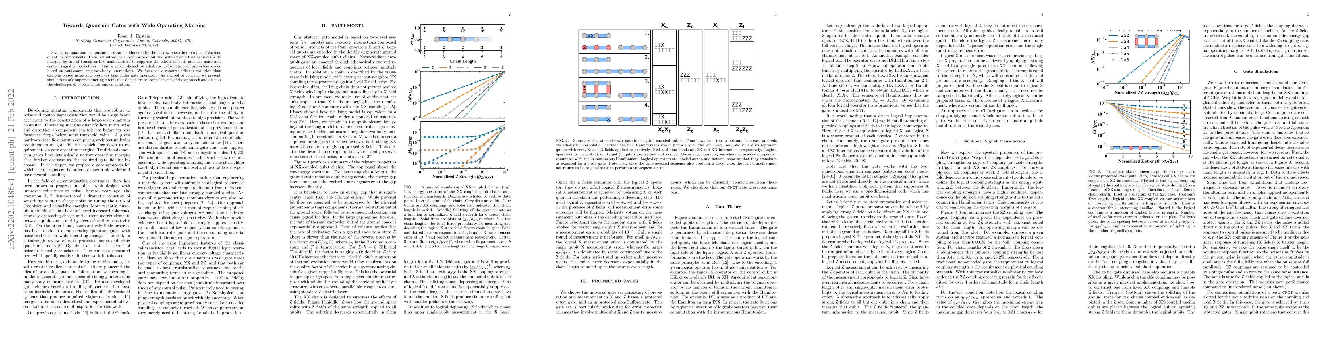 Scaling up quantum computing hardware is hindered by the narrow operating margins of current quantum components. Here, we introduce a composite qubit and gate scheme that achieves wide margins by use of transistor-like nonlinearities to suppress the effects of both ambient noise and control signal imperfections. This is accomplished by adiabatic deformation of subsystem codes based on anti-commuting two-body interactions. We focus on a resource-effcient variation that exploits biased noise and preserves bias under gate operation. As a proof of concept, we present simulations of a superconducting circuit that demonstrates core elements of the approach and discuss the challenges of experimental implementation.