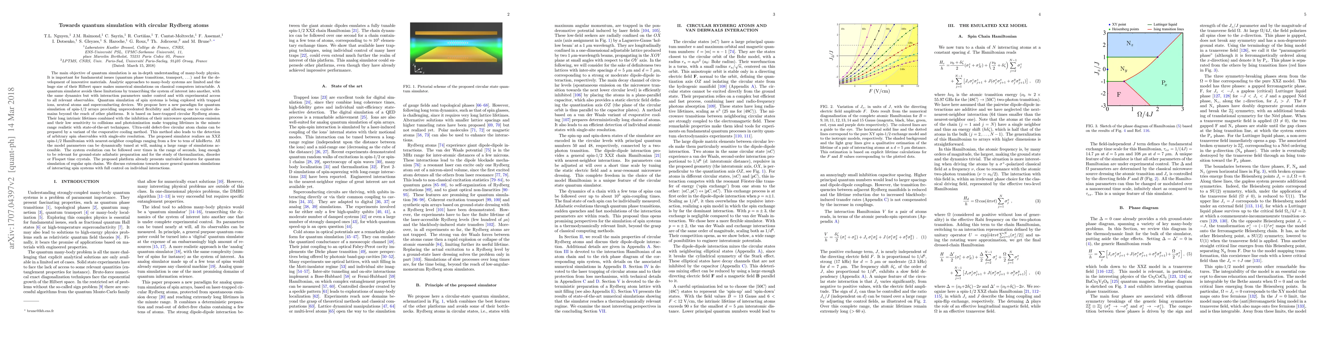 The main objective of quantum simulation is an in-depth understanding of many-body physics. It is important for fundamental issues (quantum phase transitions, transport, . . . ) and for the development of innovative materials. Analytic approaches to many-body systems are limited and the huge size of their Hilbert space makes numerical simulations on classical computers intractable. A quantum simulator avoids these limitations by transcribing the system of interest into another, with the same dynamics but with interaction parameters under control and with experimental access to all relevant observables. Quantum simulation of spin systems is being explored with trapped ions, neutral atoms and superconducting devices. We propose here a new paradigm for quantum simulation of spin-1/2 arrays providing unprecedented flexibility and allowing one to explore domains beyond the reach of other platforms. It is based on laser-trapped circular Rydberg atoms. Their long intrinsic lifetimes combined with the inhibition of their microwave spontaneous emission and their low sensitivity to collisions and photoionization make trapping lifetimes in the minute range realistic with state-of-the-art techniques. Ultra-cold defect-free circular atom chains can be prepared by a variant of the evaporative cooling method. This method also leads to the individual detection of arbitrary spin observables. The proposed simulator realizes an XXZ spin-1/2 Hamiltonian with nearest-neighbor couplings ranging from a few to tens of kHz. All the model parameters can be tuned at will, making a large range of simulations accessible. The system evolution can be followed over times in the range of seconds, long enough to be relevant for ground-state adiabatic preparation and for the study of thermalization, disorder or Floquet time crystals. This platform presents unrivaled features for quantum simulation.