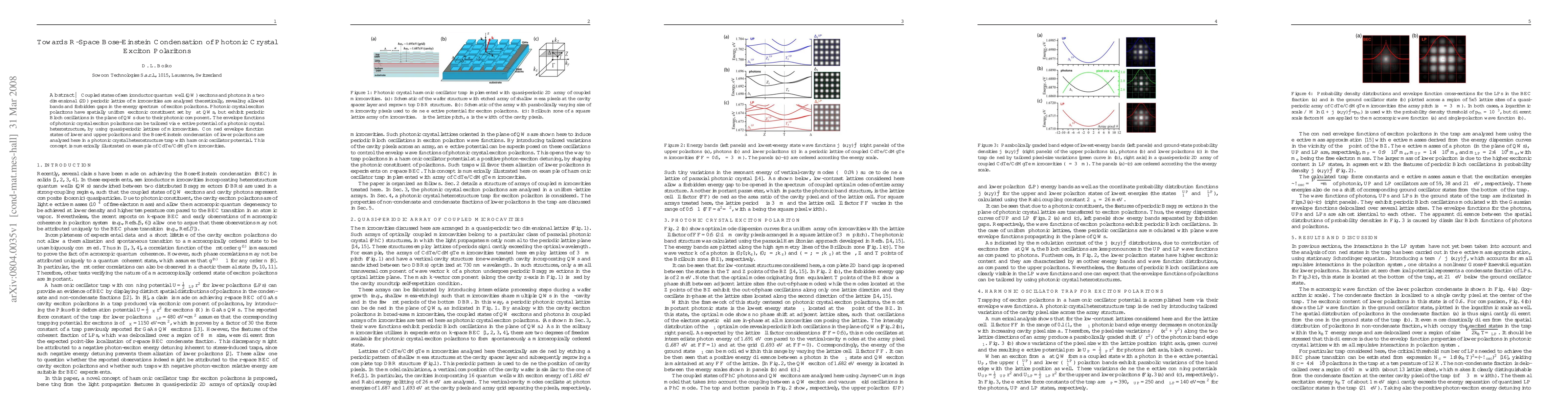 This research theoretically analyzes coupled exciton-photon states in photonic crystals, demonstrating their potential for Bose-Einstein condensation in a heterostructure trap. Numerical simulations of CdTe/CdMgTe microcavities illustrate the tailored envelope functions and periodic Bloch oscillations in the photonic crystal exciton polaritons.