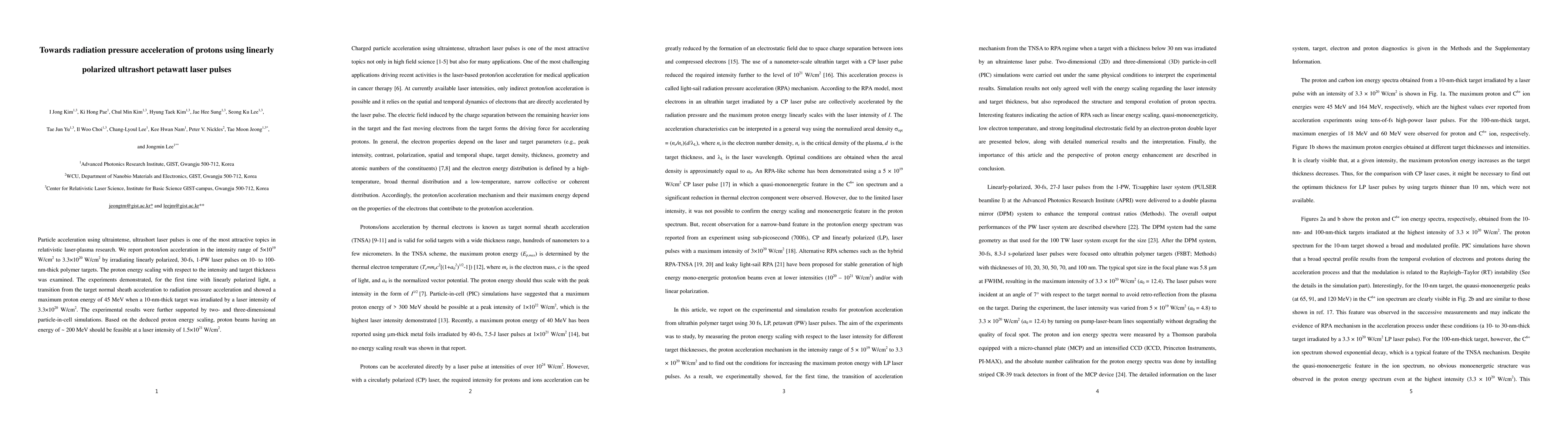 This paper reports on the acceleration of protons using ultrashort, linearly polarized petawatt laser pulses, demonstrating a transition from target normal sheath acceleration to radiation pressure acceleration, achieving a maximum proton energy of 45 MeV. Simulations support the feasibility of reaching ~200 MeV proton beams at higher laser intensities.
