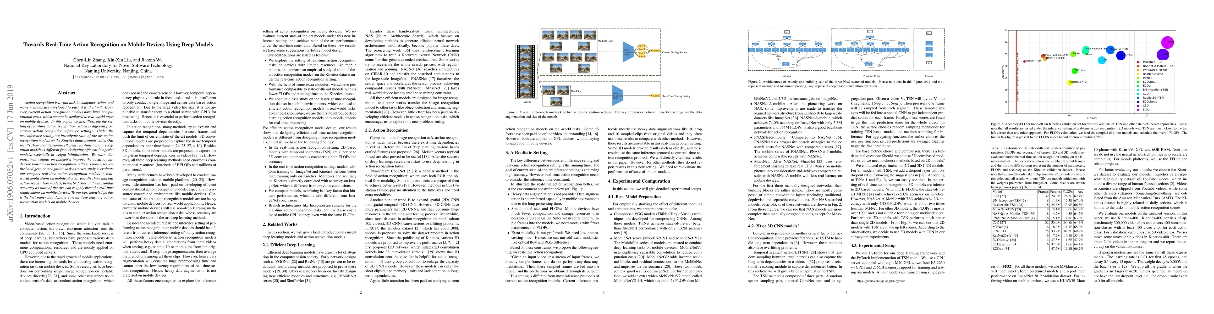 This paper explores efficient real-time action recognition models for mobile devices, demonstrating that pre-trained ImageNet weights enhance performance under real-time constraints. The study shows compact models achieving 6x faster speeds with comparable accuracy, marking the first deployment of deep learning action recognition on mobile platforms.