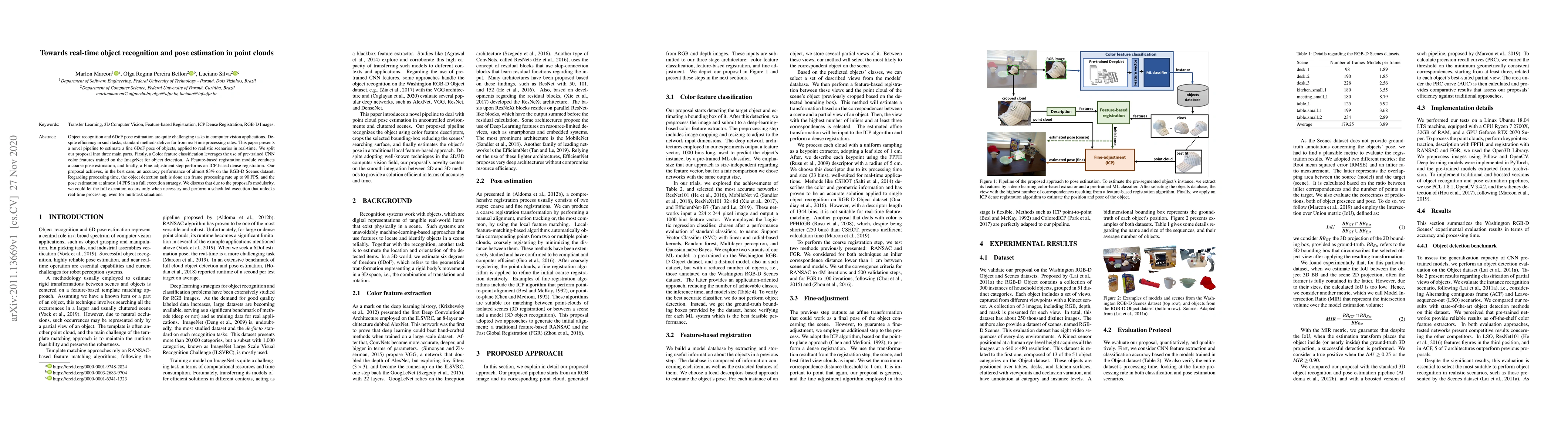 This paper introduces a novel pipeline for real-time 6DoF pose estimation and object recognition in point clouds, achieving 90 FPS for object detection and 14 FPS for pose estimation. The method combines CNN color features, feature-based registration, and ICP-based dense registration for optimal accuracy.