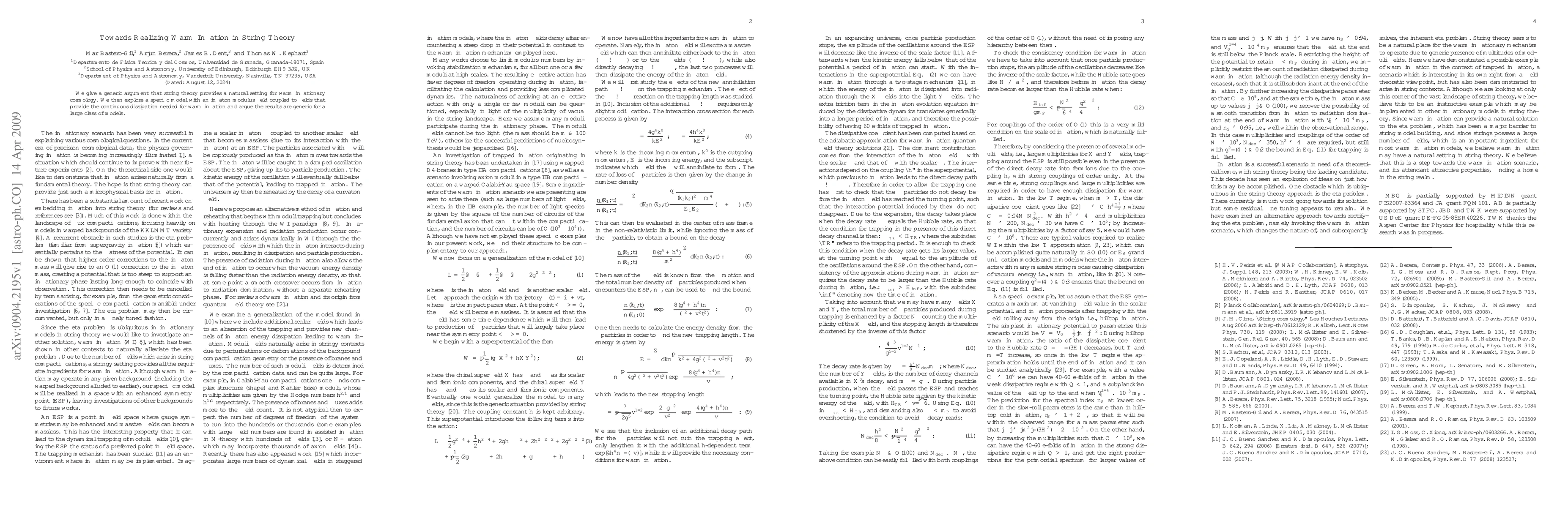 The paper proposes a warm inflation scenario in string theory utilizing multiple scalar fields arising naturally in string compactifications, providing a mechanism for moduli trapping and energy dissipation.