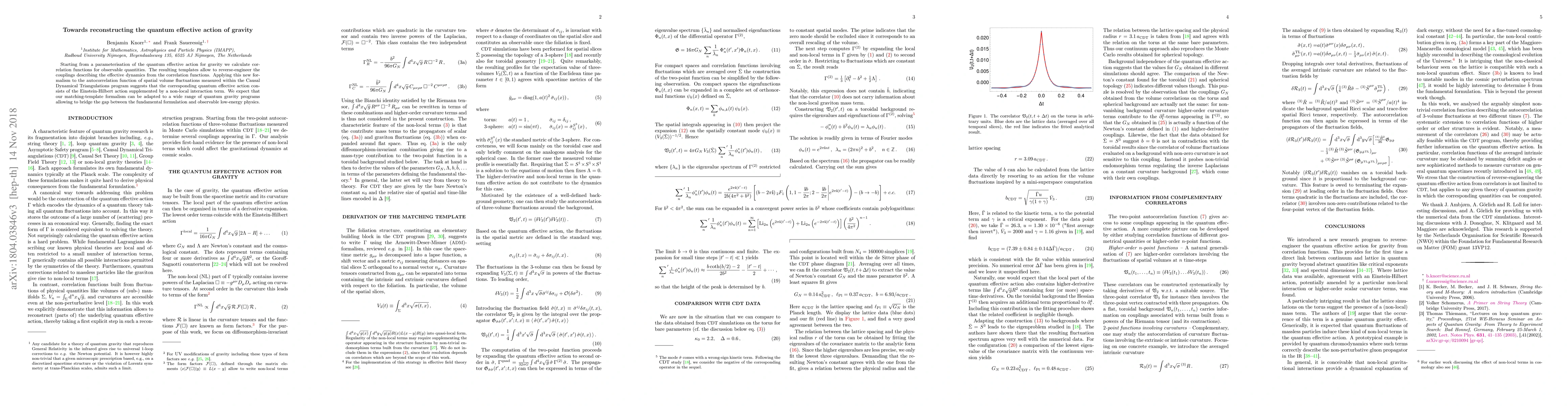 This paper develops a formalism to reconstruct the quantum effective action for gravity by calculating correlation functions from a parameterized action. It finds that the effective action likely includes the Einstein-Hilbert action plus a non-local interaction term, based on spatial volume fluctuation measurements in the Causal Dynamical Triangulations framework.