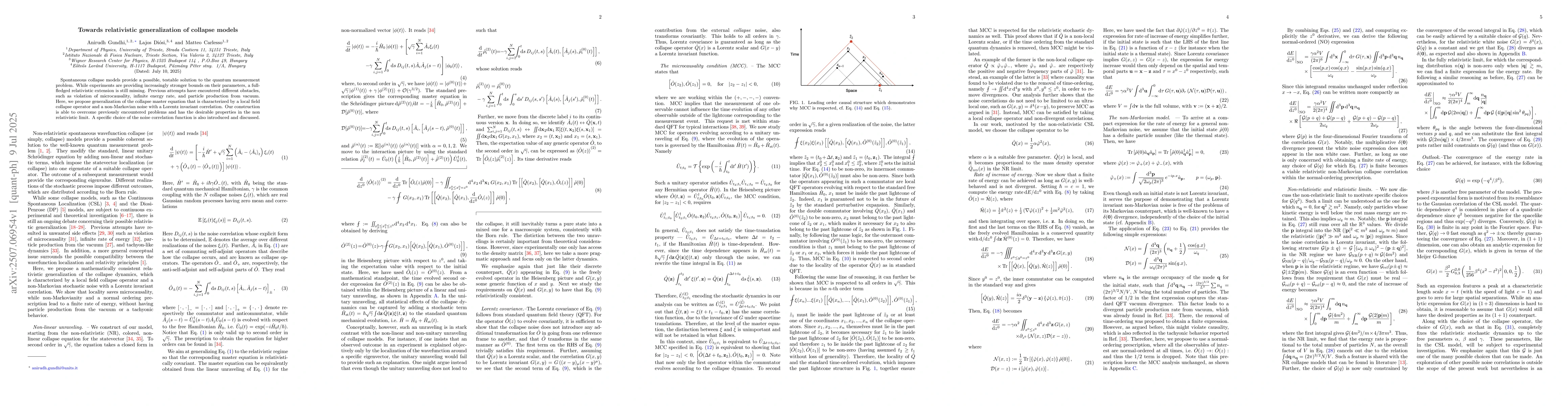 Spontaneous collapse models provide a possible, testable solution to the quantum measurement problem. While experiments are providing increasingly stronger bounds on their parameters, a full-fledged relativistic extension is still missing. Previous attempts have encoutered different obstacles, such as violation of microcausality, infinite energy rate, and particle production from vacuum. Here, we propose generalization of the collapse master equation that is characterized by a local field collapse operator and a non-Markovian noise with a Lorentz invariant correlation. Our construction is able to overcome previously encountered problems and has the desirable properties in the non relativistic limit. A specific choice of the noise correlation function is also introduced and discussed.