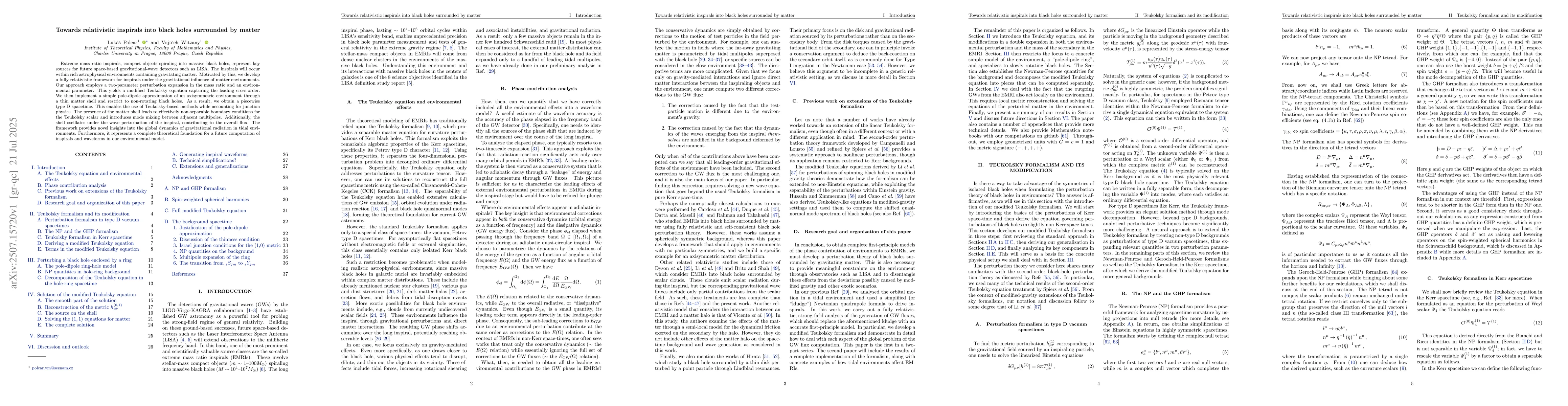 This research presents a comprehensive relativistic framework for inspirals into black holes surrounded by matter, capturing leading-order environmental effects not previously addressed in existing literature.