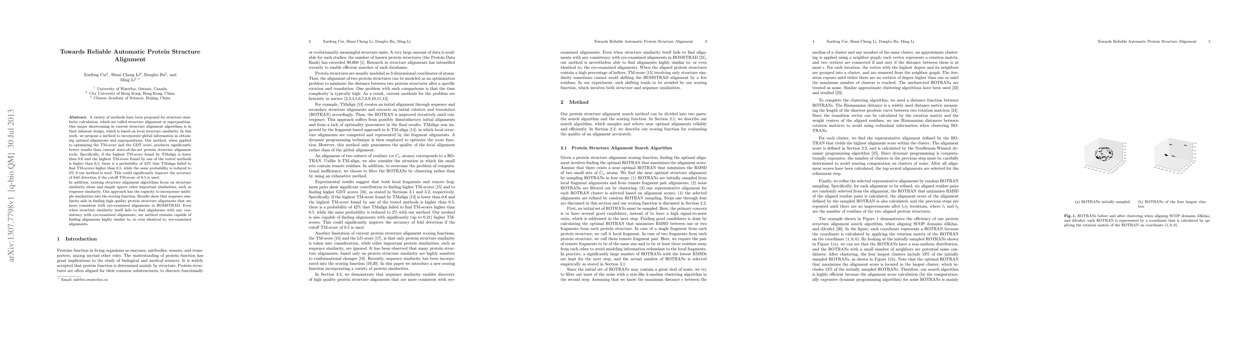 This paper proposes a novel method for protein structure alignment that incorporates global information and multiple similarity metrics, significantly improving alignment accuracy compared to existing local structure-based methods. The new approach enhances the detection of protein folds and effectively integrates sequence similarity, leading to alignments more consistent with expert-examined standards.