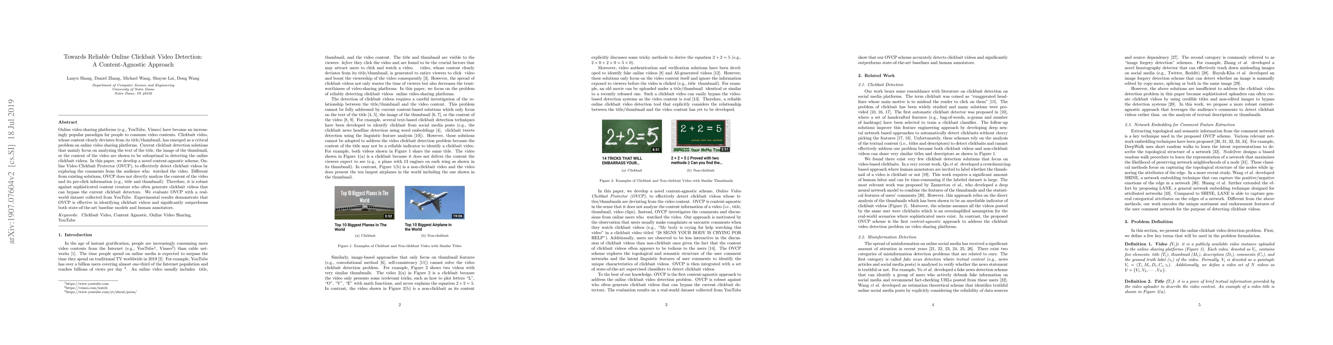 This paper proposes a content-agnostic method, Online Video Clickbait Protector (OVCP), to detect clickbait videos by analyzing audience comments rather than video content or pre-click information, showing robust performance against sophisticated clickbait tactics and outperforming existing methods.