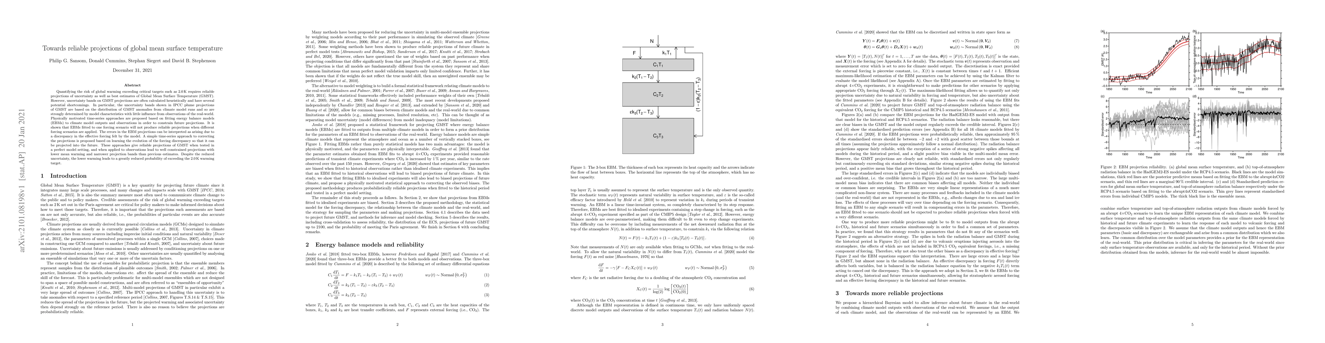 Researchers propose a new method to improve projections of global mean surface temperature uncertainty, leading to narrower projection bands and lower warming estimates, which in turn reduces the likelihood of exceeding critical warming targets.