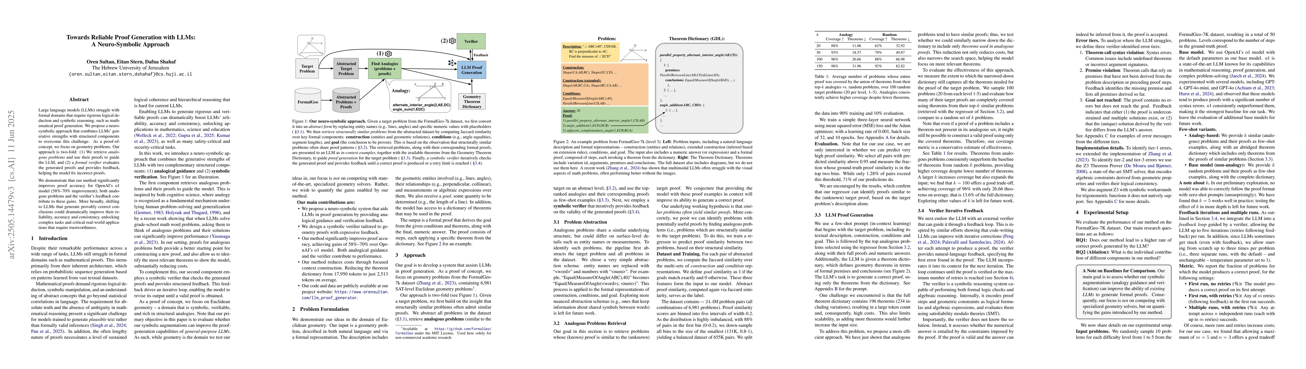 Researchers propose a neuro-symbolic approach combining LLMs with structured components to improve proof accuracy in mathematical domains like geometry, achieving 58-70% improvement over existing methods.
