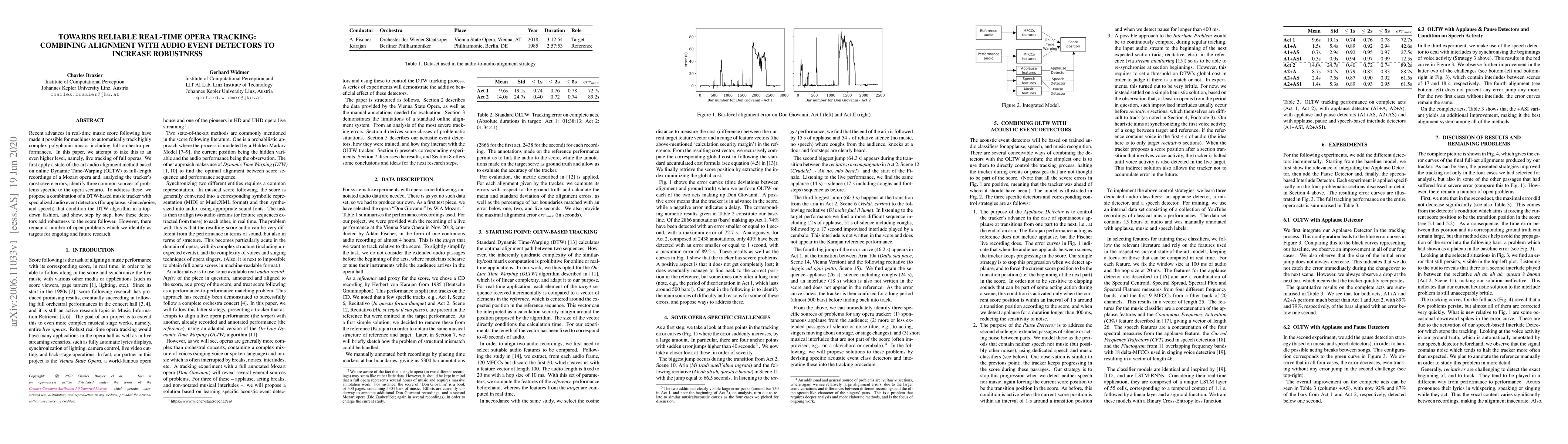 Recent advances in real-time music score following have made it possible for machines to automatically track highly complex polyphonic music, including full orchestra performances. In this paper, we attempt to take this to an even higher level, namely, live tracking of full operas. We first apply a state-of-the-art audio alignment method based on online Dynamic Time-Warping (OLTW) to full-length recordings of a Mozart opera and, analyzing the tracker's most severe errors, identify three common sources of problems specific to the opera scenario. To address these, we propose a combination of a DTW-based music tracker with specialized audio event detectors (for applause, silence/noise, and speech) that condition the DTW algorithm in a top-down fashion, and show, step by step, how these detectors add robustness to the score follower. However, there remain a number of open problems which we identify as targets for ongoing and future research.