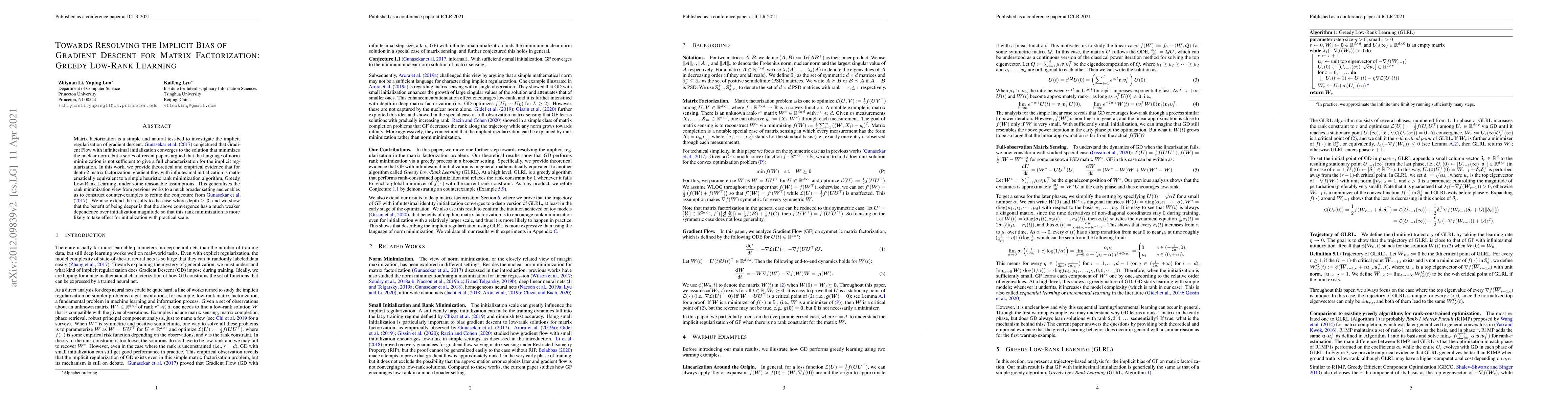 This paper demonstrates that gradient flow for depth-2 matrix factorization with infinitesimal initialization converges to solutions found by Greedy Low-Rank Learning, refuting previous conjectures. It extends these findings to higher depths, showing reduced sensitivity to initialization magnitude.