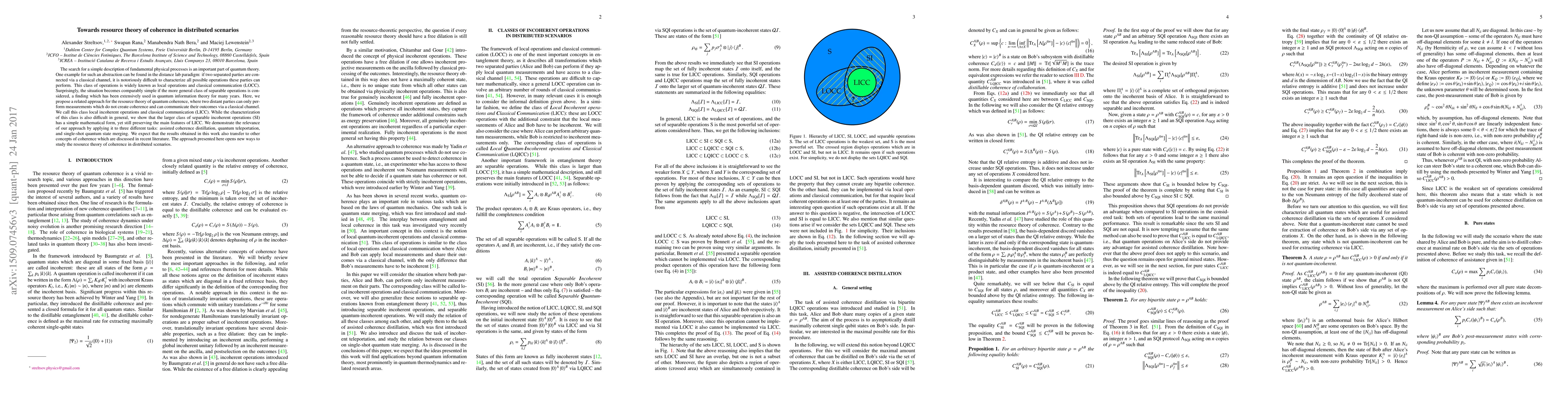 This paper proposes a resource theory of quantum coherence in distributed scenarios, focusing on local incoherent operations and classical communication (LICC). It demonstrates that while LICC is generally difficult to characterize, the larger class of separable incoherent operations (SI) offers a simpler mathematical framework that retains LICC's key features, and applies this approach to assisted coherence distillation, quantum teleportation, and single-shot quantum state merging.