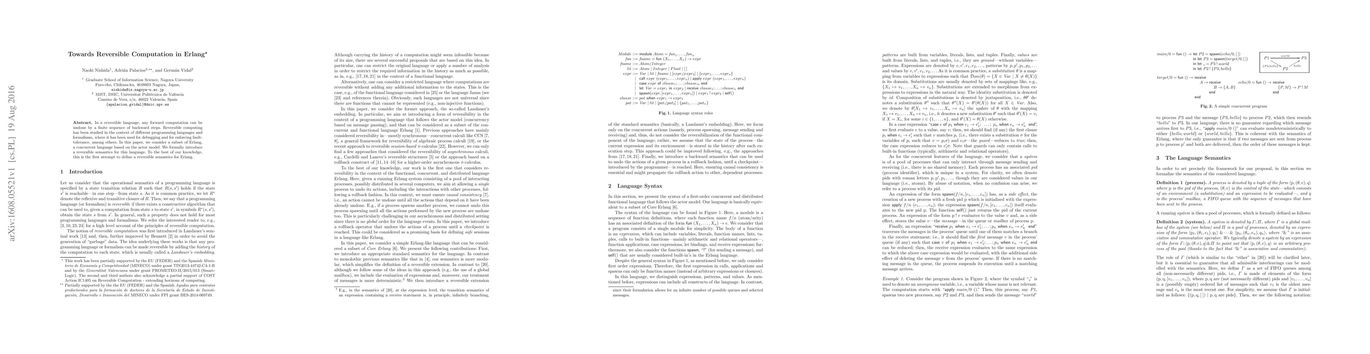 This paper introduces a reversible semantics for a subset of Erlang, aiming to enable any computation to be undone via backward steps, thereby enhancing debugging and fault-tolerance. To our knowledge, this is the first effort to define such a semantics for Erlang.