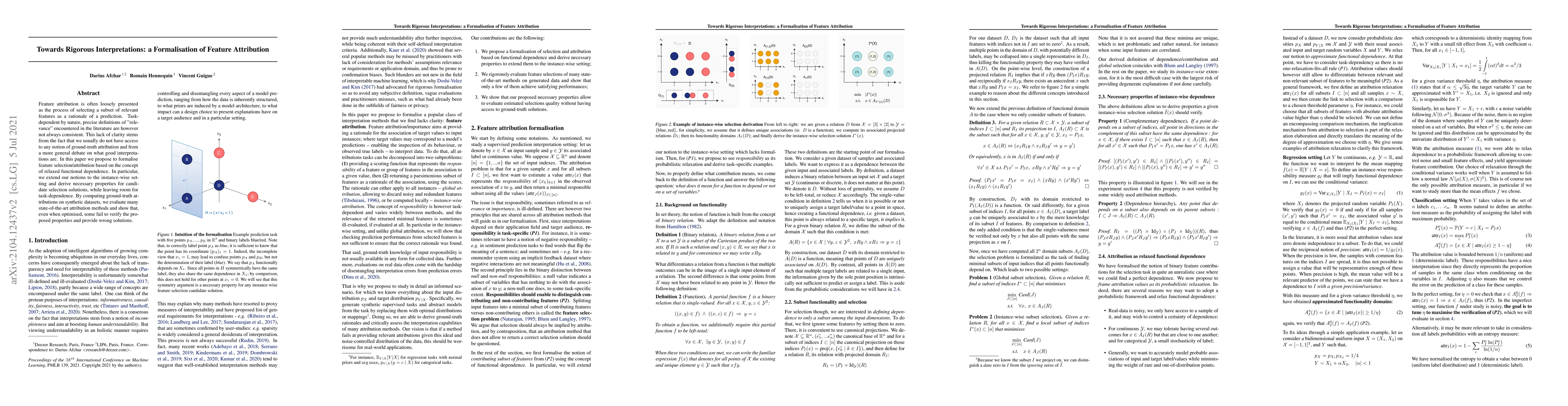 This paper formalises feature attribution using relaxed functional dependence, proposing a rigorous framework for selecting relevant features in predictive models. It evaluates state-of-the-art methods, revealing that many fail to meet the proposed criteria despite optimisation, highlighting the need for more consistent interpretation frameworks.