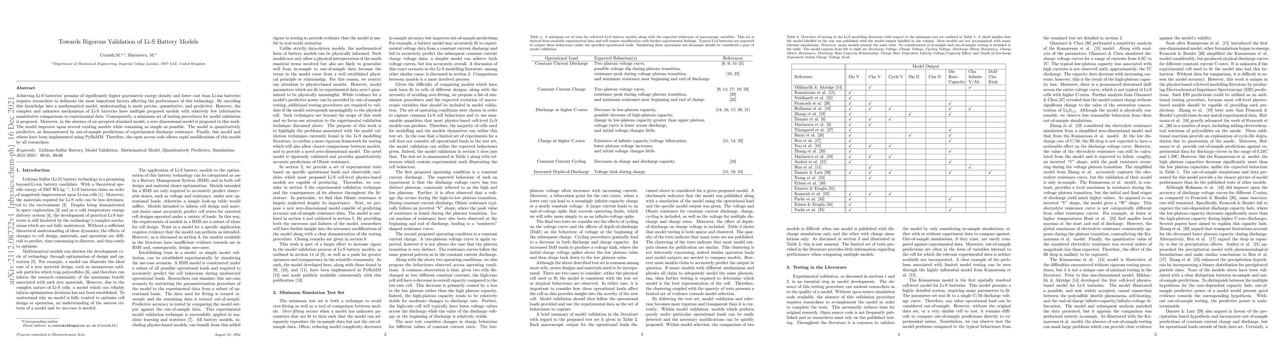 Achieving Li-S batteries' promise of significantly higher gravimetric energy density and lower cost than Li-ion batteries requires researchers to delineate the most important factors affecting the performance of this technology. By encoding this knowledge into a mathematical model, understanding is made precise, quantitative, and predictive. However, the complex and unknown mechanisms of Li-S batteries have multiple proposed models with relatively few informative quantitative comparisons to experimental data. Consequently, a minimum set of testing procedures for model validation is proposed. Moreover, in the absence of an accepted standard model, a zero dimensional model is proposed in this work. The model improves upon several existing models while remaining as simple as possible. The model is quantitatively predictive, as demonstrated by out-of-sample predictions of experimental discharge resistance. Finally, this model and others have been implemented using PyBaMM. Therefore, the open access code allows rapid modifications of this model by all researchers.