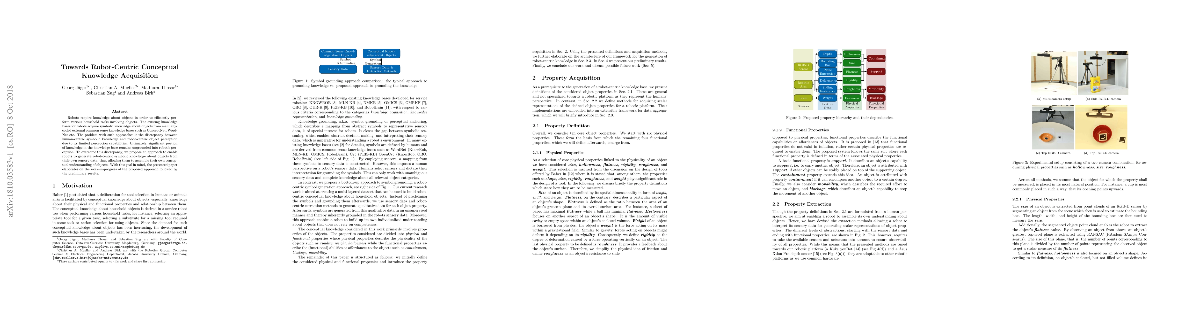 Robots require knowledge about objects in order to efficiently perform various household tasks involving objects. The existing knowledge bases for robots acquire symbolic knowledge about objects from manually-coded external common sense knowledge bases such as ConceptNet, Word-Net etc. The problem with such approaches is the discrepancy between human-centric symbolic knowledge and robot-centric object perception due to its limited perception capabilities. Ultimately, significant portion of knowledge in the knowledge base remains ungrounded into robot's perception. To overcome this discrepancy, we propose an approach to enable robots to generate robot-centric symbolic knowledge about objects from their own sensory data, thus, allowing them to assemble their own conceptual understanding of objects. With this goal in mind, the presented paper elaborates on the work-in-progress of the proposed approach followed by the preliminary results.