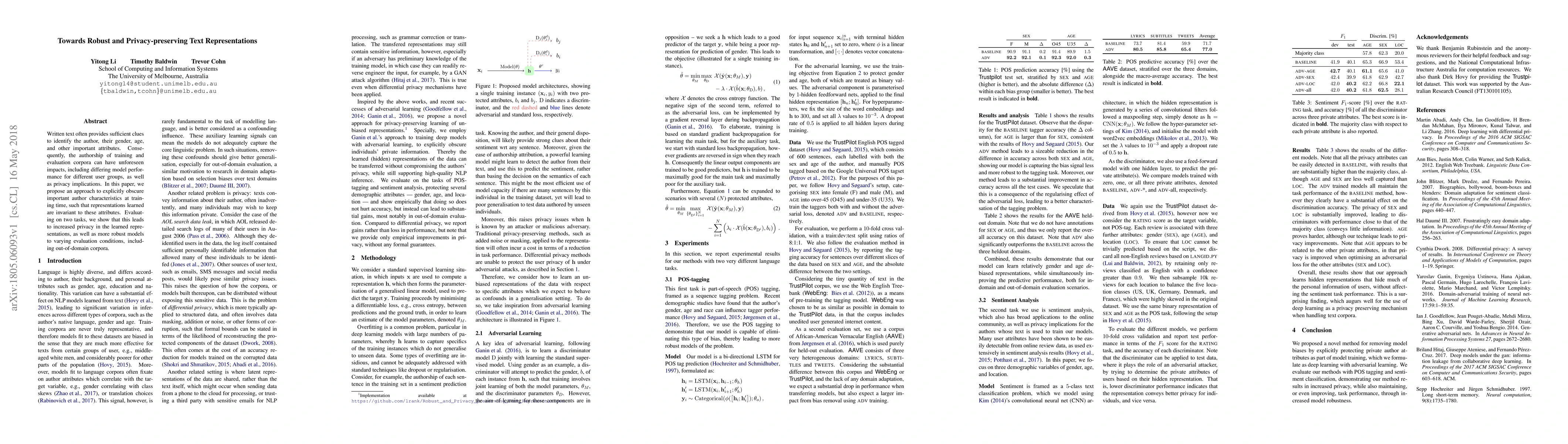 Researchers propose a method to obscure text author characteristics in machine learning models, leading to more robust and privacy-preserving representations. This approach improves model performance and privacy across different user groups and out-of-domain corpora.