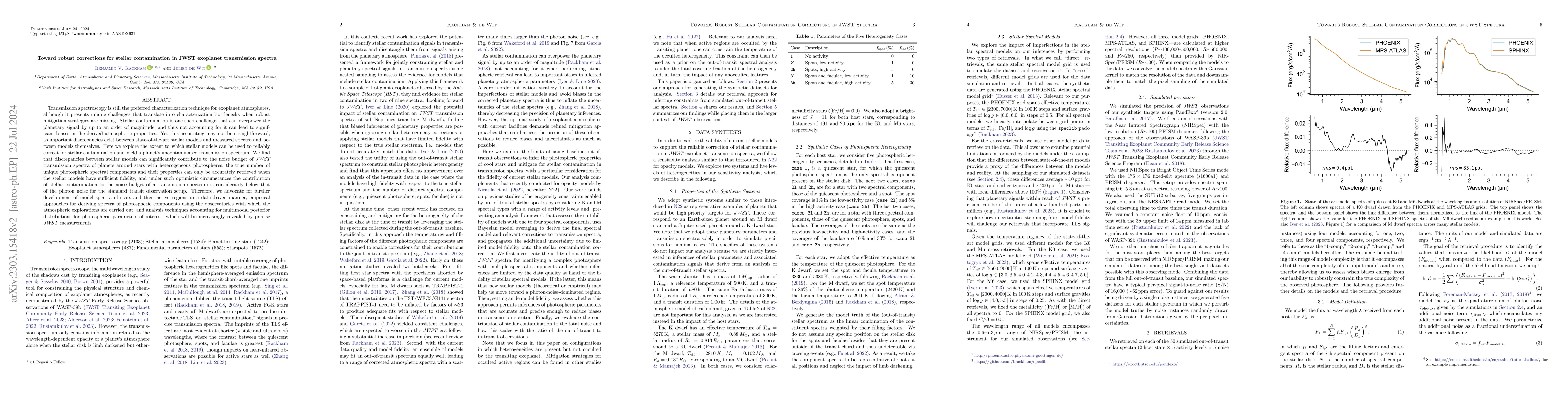 This paper investigates methods to correct for stellar contamination in JWST exoplanet transmission spectra, finding that discrepancies between stellar models can significantly impact the noise budget. It concludes that improved stellar models and empirical spectral derivations are essential for accurate atmospheric characterization.