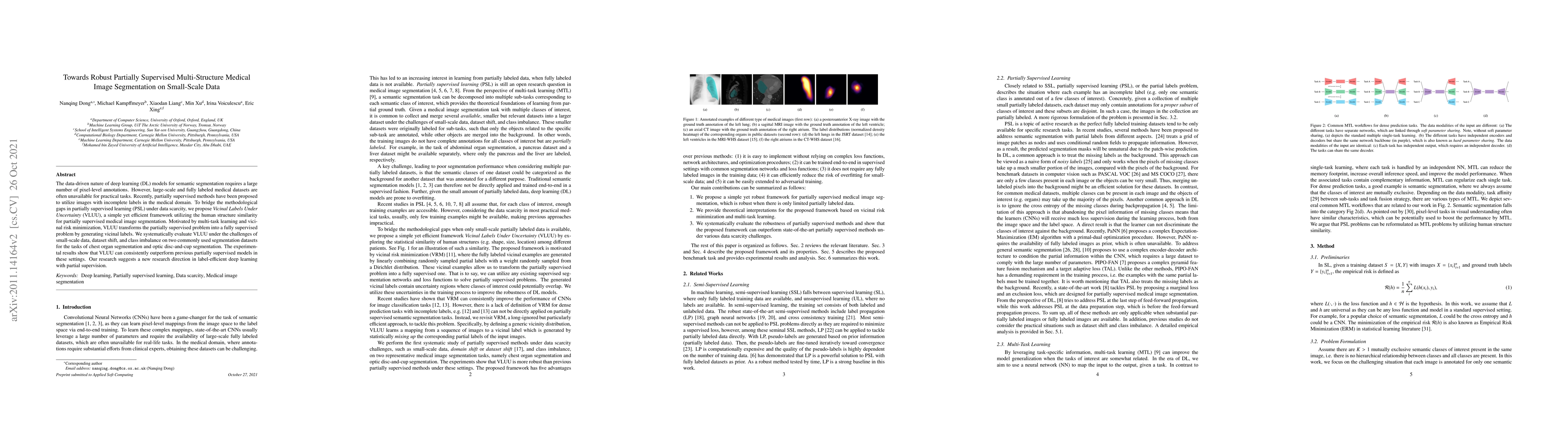This paper proposes Vicinal Labels Under Uncertainty (VLUU) to tackle the challenge of segmenting medical images with limited annotations, leveraging human structure similarity. VLUU transforms partially supervised learning into a fully supervised problem by generating vicinal labels, achieving superior performance on small-scale datasets for chest organ and optic disc-and-cup segmentation tasks.