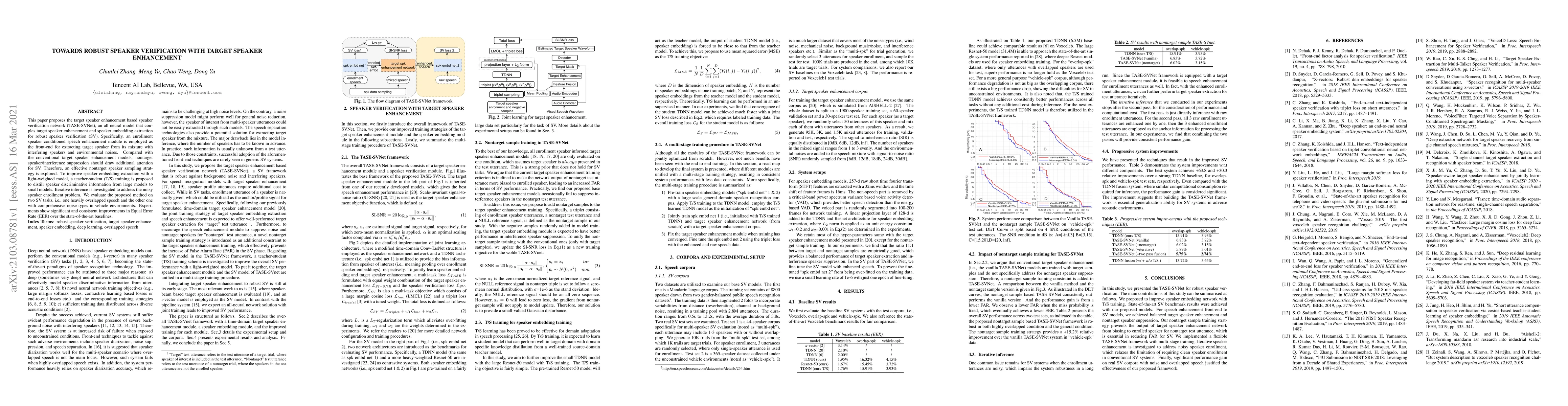This paper introduces TASE-SVNet, a neural network combining target speaker enhancement and speaker embedding extraction for robust speaker verification. It employs an enrollment speaker conditioned enhancement module and a teacher-student training approach to improve performance, achieving significant improvements in Equal Error Rate (EER) over baselines in challenging environments.