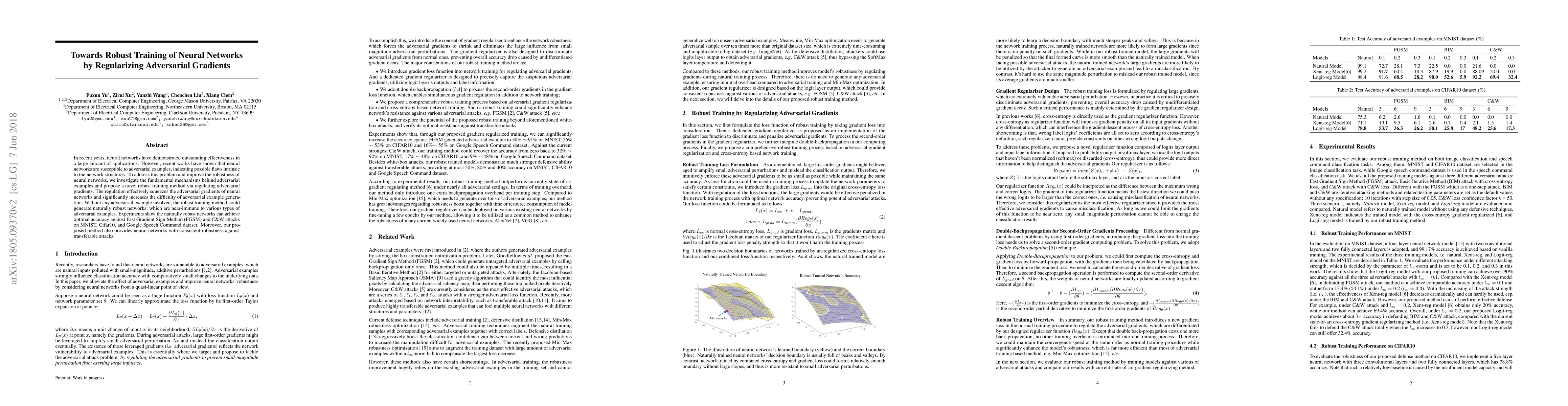 This paper proposes a novel training method to enhance neural network robustness by regulating adversarial gradients, which effectively makes adversarial example generation more difficult. The method generates naturally robust networks without using adversarial examples, achieving optimal accuracy against various attacks on multiple datasets.