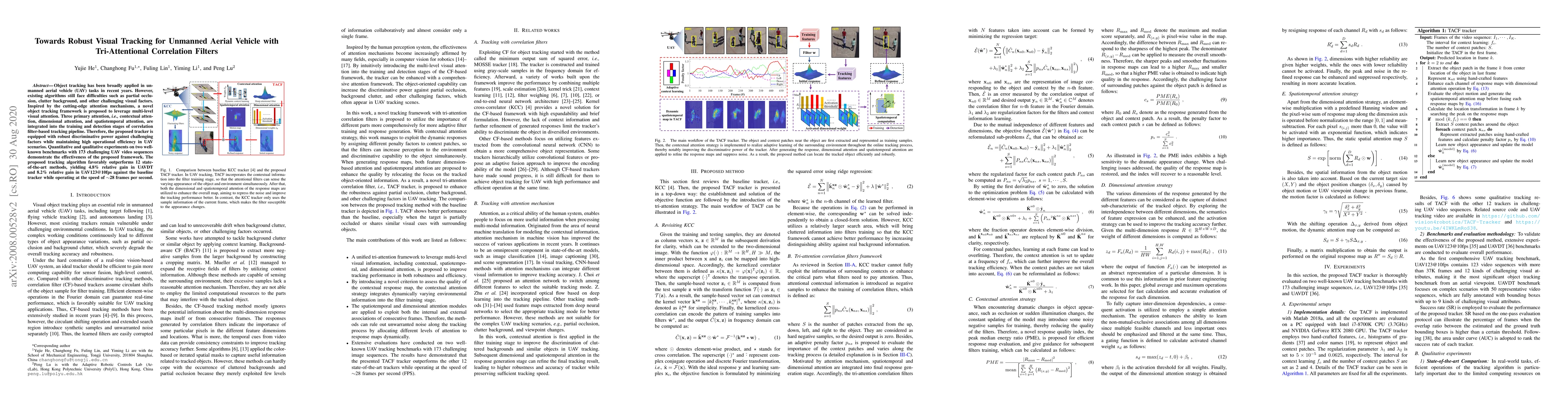 This paper proposes a novel tri-attentional correlation filter-based tracking framework for UAVs, integrating contextual, dimensional, and spatiotemporal attention to enhance robustness against occlusions and clutter. Experimental results show significant improvements over 12 state-of-the-art methods, achieving a 4.8% relative gain in UAVDT and a 8.2% gain in UAV123@10fps while maintaining high efficiency.
