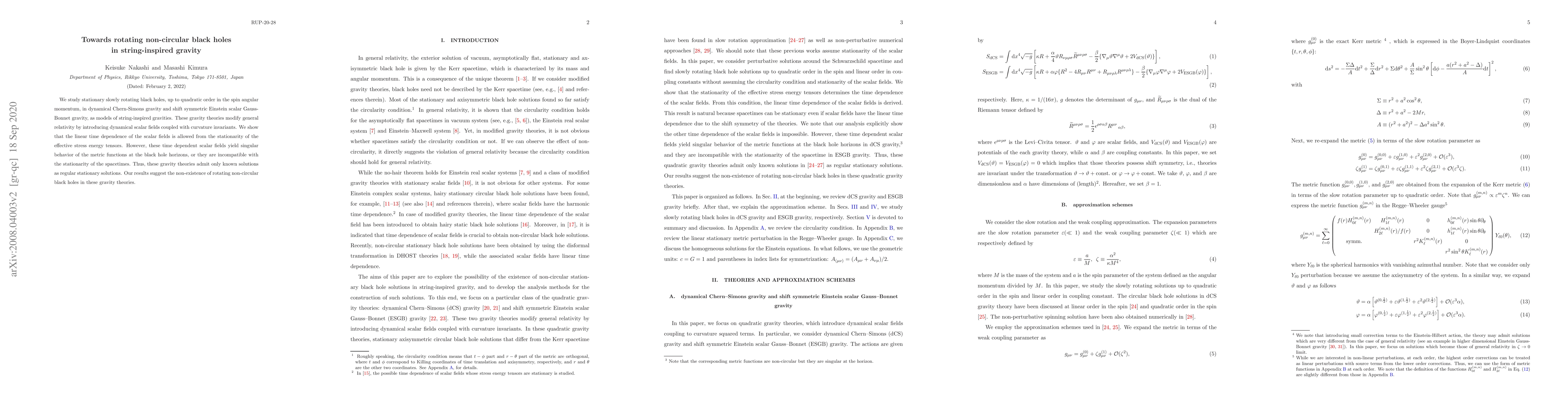 This paper investigates rotating black holes in string-inspired gravity theories, specifically dynamical Chern-Simons and Einstein scalar Gauss-Bonnet gravities, finding that these theories do not support rotating non-circular black holes due to singular metric behavior or stationarity issues.