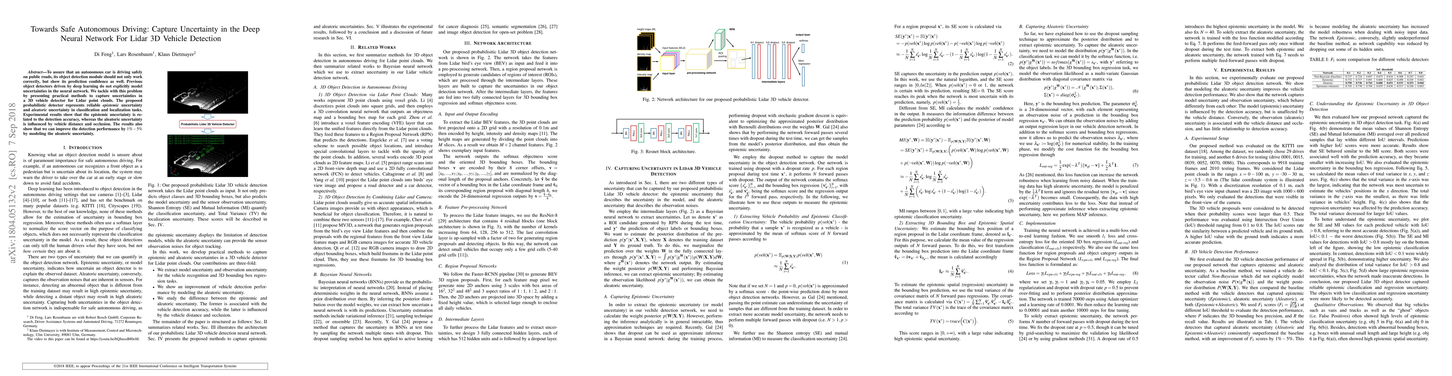 This paper proposes a probabilistic deep neural network for Lidar-based 3D vehicle detection that explicitly models uncertainties to improve autonomous driving safety. The method captures both epistemic and aleatoric uncertainties, leading to a 1%-5% improvement in detection performance by addressing aleatoric uncertainty.