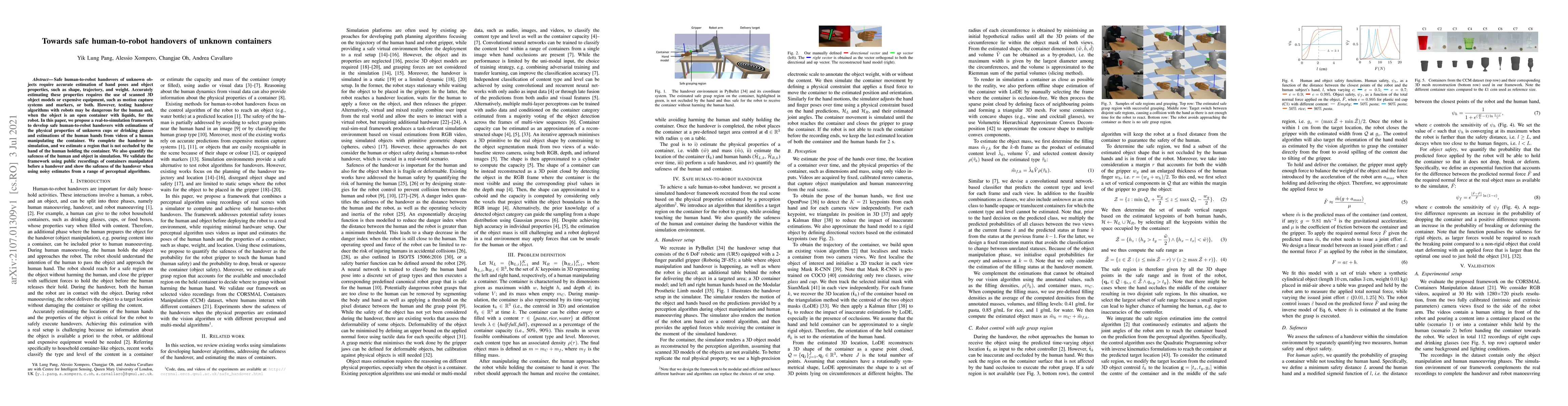 Researchers developed a safe framework for human-robot handovers of unknown containers, using real-world videos to estimate object properties and human hand poses in simulation, enabling safer testing.