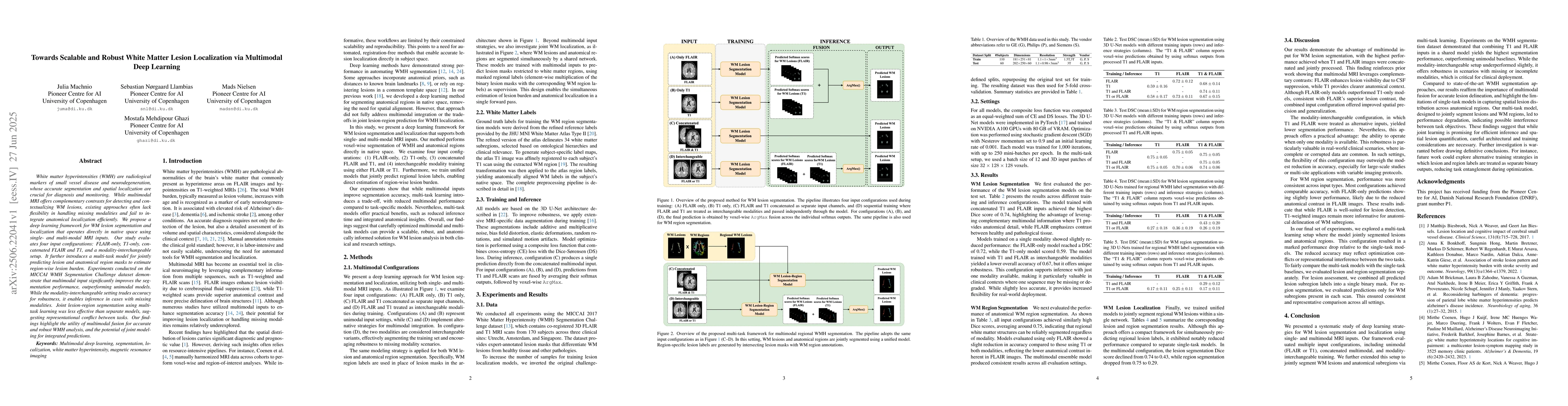 The study proposes a deep learning framework for white matter lesion (WMH) segmentation and localization using single- and multi-modal MRI inputs, directly in native space. It evaluates four input configurations: FLAIR-only, T1-only, concatenated FLAIR and T1, and modality-interchangeable setup. A multi-task model is introduced for jointly predicting lesion and anatomical region masks to estimate region-wise lesion burden.
