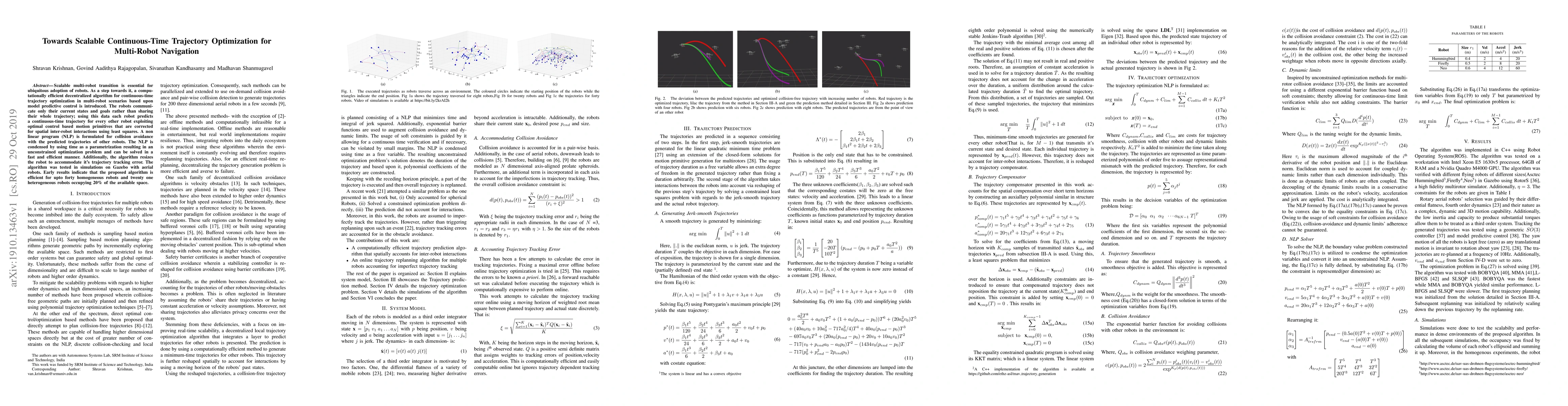 Scalable multi-robot transition is essential for ubiquitous adoption of robots. As a step towards it, a computationally efficient decentralized algorithm for continuous-time trajectory optimization in multi-robot scenarios based upon model predictive control is introduced. The robots communicate only their current states and goals rather than sharing their whole trajectory; using this data each robot predicts a continuous-time trajectory for every other robot exploiting optimal control based motion primitives that are corrected for spatial inter-robot interactions using least squares. A non linear program (NLP) is formulated for collision avoidance with the predicted trajectories of other robots. The NLP is condensed by using time as a parametrization resulting in an unconstrained optimization problem and can be solved in a fast and efficient manner. Additionally, the algorithm resizes the robot to accommodate it's trajectory tracking error. The algorithm was tested in simulations on Gazebo with aerial robots. Early results indicate that the proposed algorithm is efficient for upto forty homogeneous robots and twenty one heterogeneous robots occupying 20\% of the available space.