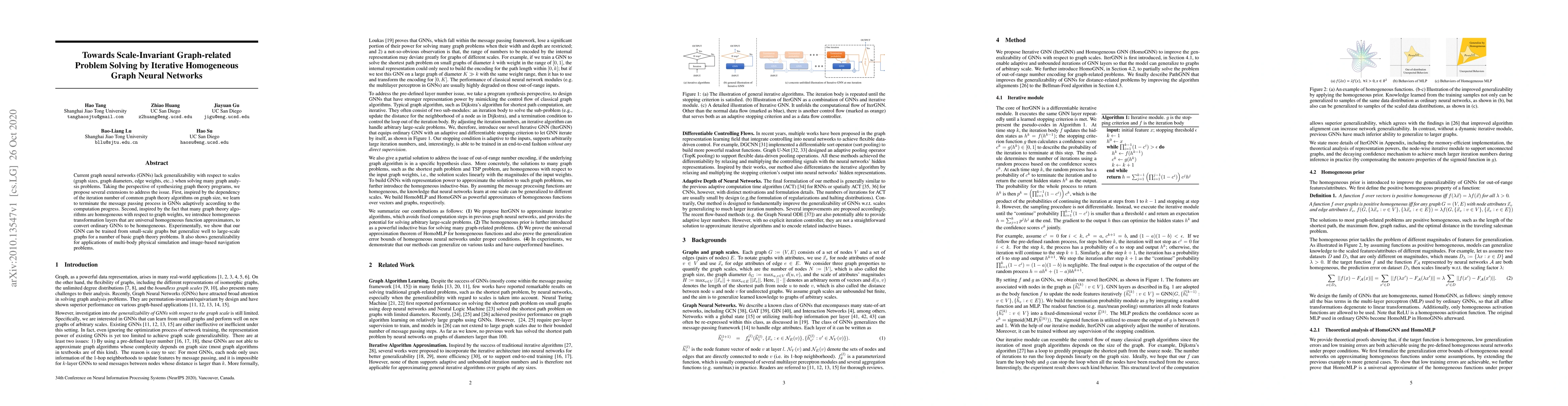 Researchers developed a new type of graph neural network that can solve problems on large graphs with similar accuracy as smaller ones, using adaptive termination and homogeneous transformation layers.