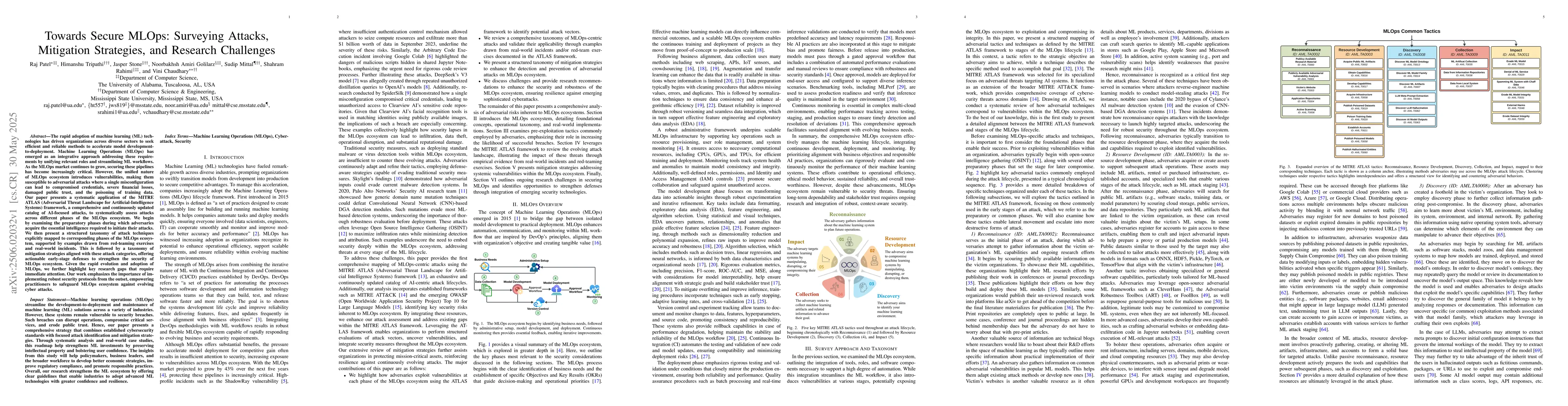 The paper contributes a systematic application of the MITRE ATLAS framework to MLOps security, providing a structured taxonomy of attacks and mitigation strategies.