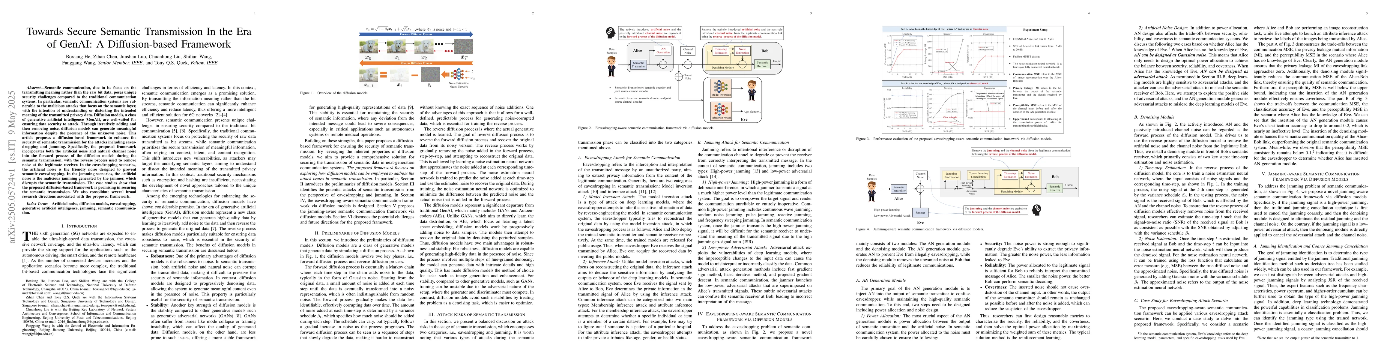The paper proposes a diffusion-based framework for enhancing semantic transmission security, incorporating artificial and natural noises into the forward process of diffusion models during transmission, and using the reverse process to remove noise at the legitimate receiver.