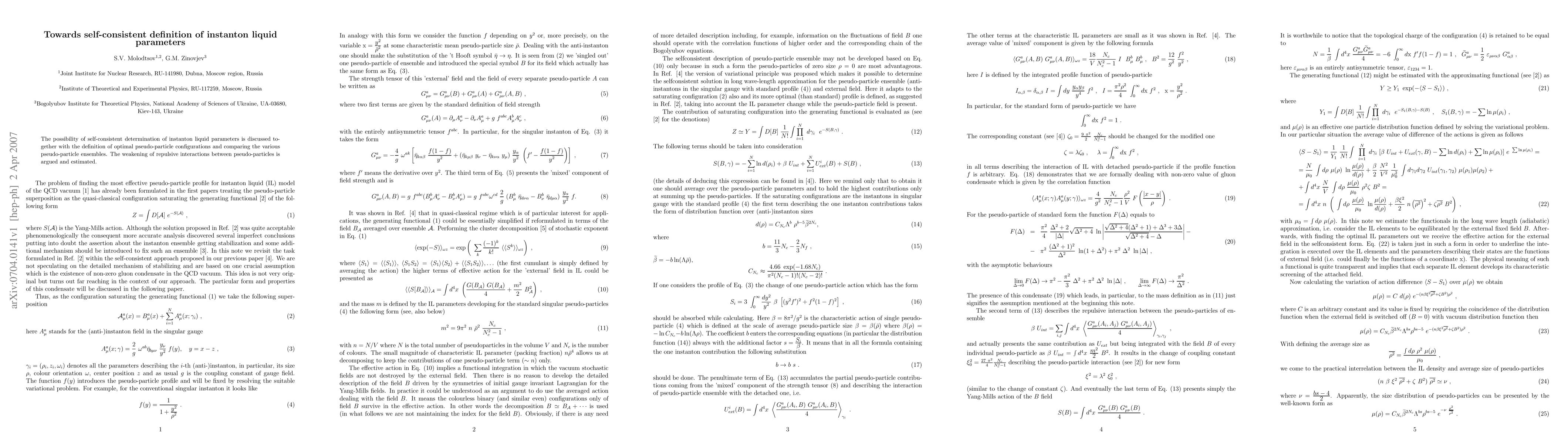 The possibility of self-consistent determination of instanton liquid parameters is discussed together with the definition of optimal pseudo-particle configurations and comparing the various pseudo-particle ensembles. The weakening of repulsive interactions between pseudo-particles is argued and estimated.