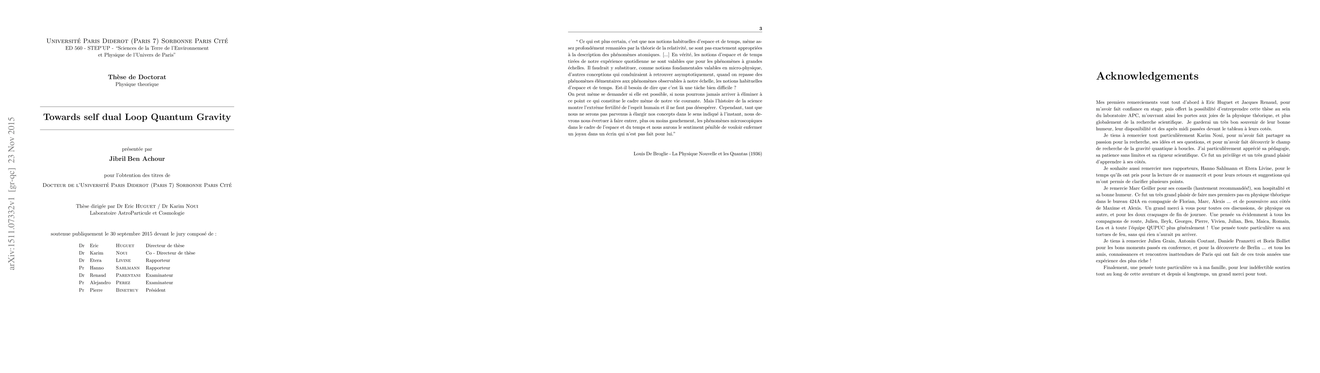 In this PhD thesis, we introduced a new strategy to investigate the kinematical and physical predictions of self dual Loop Quantum Gravity (LQG) and by-passed the old problem of implementing quantum mechanically the so called reality conditions inherent to the self dual Ashtekar's phase space. We first review the loop quantization of the spherically isolated horizon and the computation of its micro-canonical entropy. Then we present the so called gas of punctures model for the quantum horizon, discussing its results in the canonical and grand-canonical ensembles and its limits. The fourth chapter is devoted to studying to what extend the loop quantization based on the self dual variables could cure those problems. We introduce a new strategy, based on an analytic continuation of the degeneracy from $\gamma \in R$ to $\gamma = \pm i$. We review in details the construction of the procedure, and present the results. At the leading term, we recover exactly the Bekenstein-Hawking area law. The fifth chapter is devoted to understanding more precisely the interplay between the status of the Immirzi parameter. In order to do this, we introduce from a new toy model describing $2+1$ gravity which depends explicitly on the Immirzi parameter. Finally, the sixth chapter is devoted to applying our procedure to the simplest Loop Quantum Cosmology model. By first constructing the LQC dynamics for any arbitrary spin j and then implementing our analytic continuation, we show that our procedure preserves the key features of the LQC models, i.e. we obtain a bouncing universe which admits the right semi classical limit after the bounce.