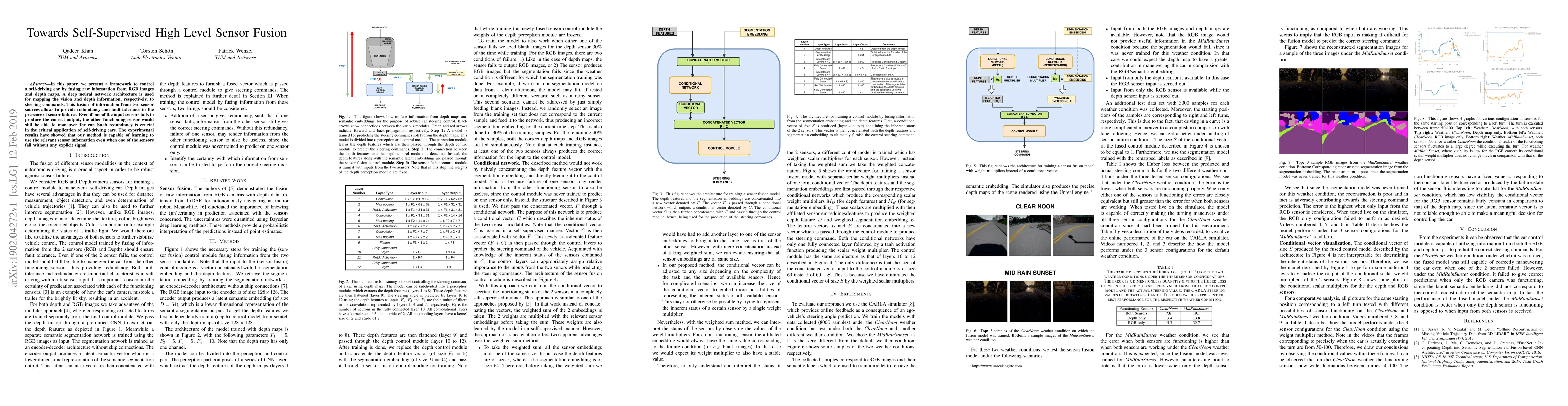 In this paper, we present a framework to control a self-driving car by fusing raw information from RGB images and depth maps. A deep neural network architecture is used for mapping the vision and depth information, respectively, to steering commands. This fusion of information from two sensor sources allows to provide redundancy and fault tolerance in the presence of sensor failures. Even if one of the input sensors fails to produce the correct output, the other functioning sensor would still be able to maneuver the car. Such redundancy is crucial in the critical application of self-driving cars. The experimental results have showed that our method is capable of learning to use the relevant sensor information even when one of the sensors fail without any explicit signal.